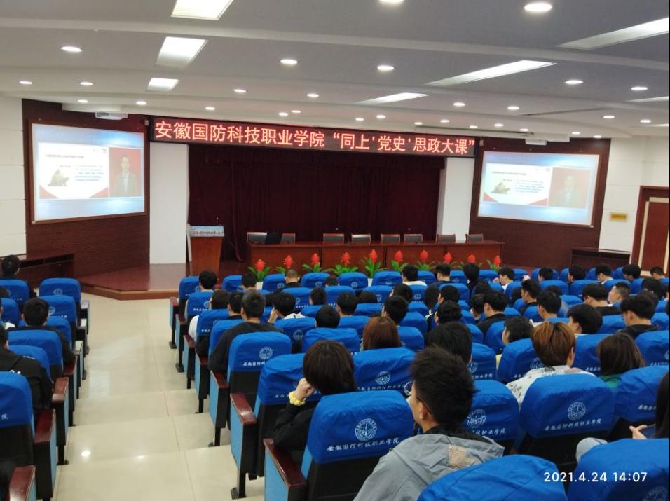 4月24日,万象城官网组织师生代表在报告厅集中收看“同上‘四史’思政大课”线上直播,200多名师生共同感悟中国共产党的伟大征程与辉煌成就.