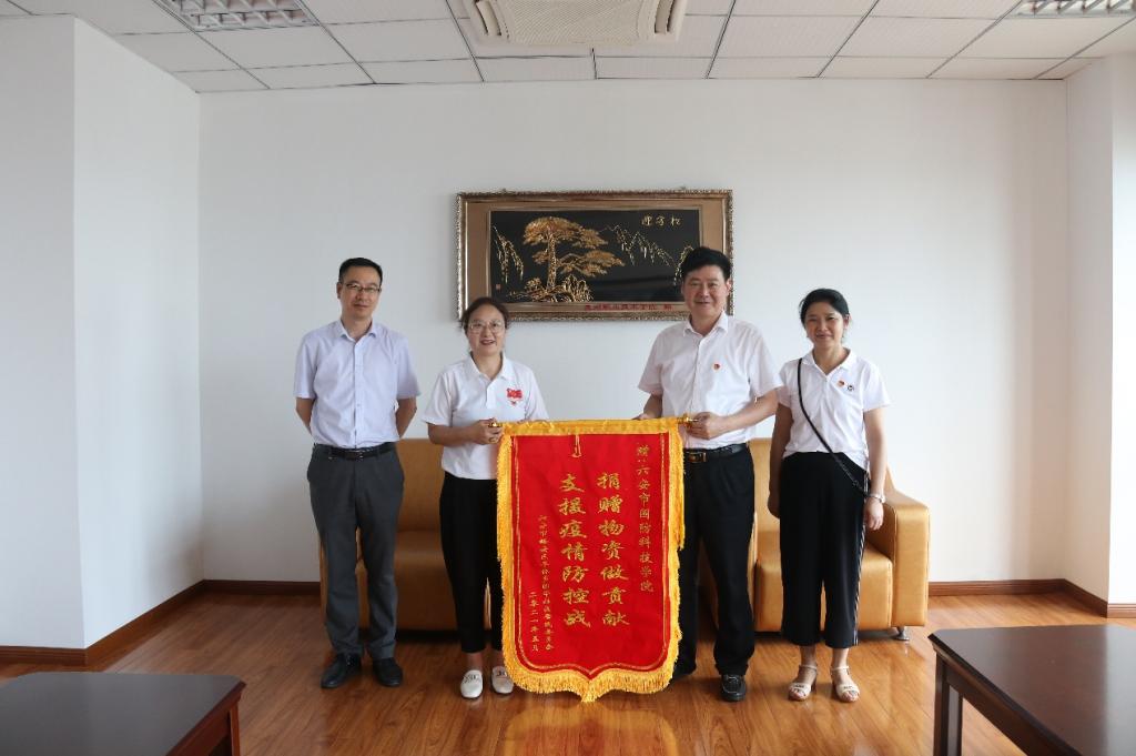 本网讯 “不忘初心担使命,众志成城抗疫情”,6月30日下午,平桥乡国华社区主任纪再玲率队向万象城官网赠送锦旗,感谢万象城官网在疫情防控期间为社区防疫工作提供的支持和帮助。校党委书记余嗣元,人事处、党政办、团委等部门负责人参加了赠旗仪式。