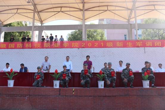 闭幕式上,袁旗宣布军训课目汇演开始。汇报表演以庆祝中国共产党迎来百年华诞为主题,近千名学生不断组成中国地图、中国共产党党徽图案,以及1921、2021、100等数字,代表中国共产党成立至今已有百年辉煌历程。在一声声铿锵有力的“请党放心,强国有我!”的呐喊声中,表达了国防师生对祖国、对中国共产党的无限热爱和祝福。青春洋溢的动感操展现出国防学子的朝气蓬勃,感恩主题手语表演向老师父母表达了感恩之心,整齐划一的队列表演、孔武有力的军体拳,操场上喊声振天,气壮山河。
