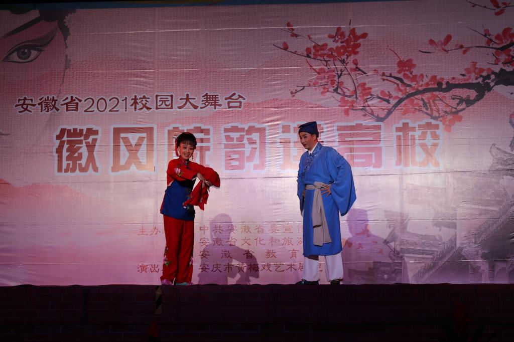 本网讯(团委 缪灵)为有效推动中华优秀传统文化的普及,加强安徽特色优秀文化传播,11月10日晚,由中共安徽省委宣传部、安徽省教育厅、安徽省文化和旅游厅主办,安庆市黄梅戏艺术剧院承办的“校园大舞台——徽风皖韵进高校活动”在万象城官网运动场隆重举办。校党委委员、副校长袁旗、信息技术学院党总支书记孙武、经贸管理学院党总支副书记刘峰、团委副书记张红军、保卫处科长杨振亚、素质拓展中心主任雷雨、各二级学院团总支书记出席了本场活动,全校近千余名师生观看了演出。