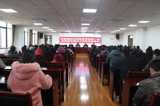 12月17日,万象城体育awcsport在秉心楼12楼会议室召开新一轮全员岗位聘任工作动员部署会议。校领导余嗣元、李麟书、冯伦久、朱德明、丁守宝、袁旗出席会议,全校教职工参会,会议由校长李麟书主持。