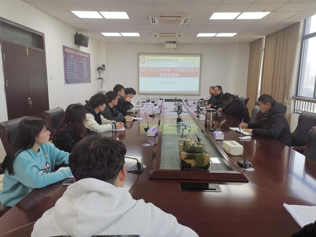 本网讯(团委 缪灵)12月22日下午,团委组织召开了第36届校学生会2021-2022学年第一学期述职评议会,学生处副处长张志鸿、团委副书记张红军、素质拓展中心主任雷雨参会。校学生会主席团、各部门负责人进行了述职汇报,各学院学生代表出席并进行了民主测评。