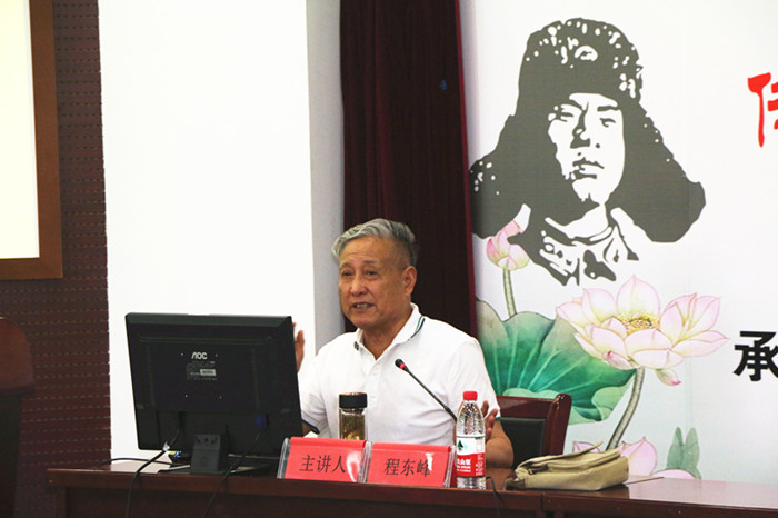 首先,皖西学院程东峰教授为大家上了一堂题为《民族精神、时代精神框架下的大别山革命精神解读》的道德课,程教授用生动的语言、深入浅出的分析,以什么是精神、什么是中国精神引入,从对党忠诚、坚信马列、人民至上、无私奉献、鱼水情深、勇往直前等六个方面对大别山革命精神进行了深刻的解读,内容丰富而精彩,使在场的师生深受大别山精神的激励与鼓舞。