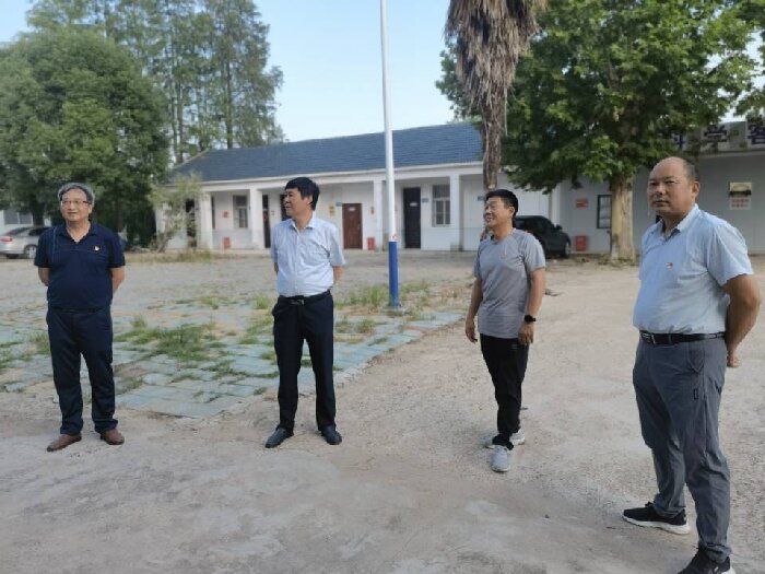 校党委书记余嗣元(左二)一行走访调研太平小学校舍