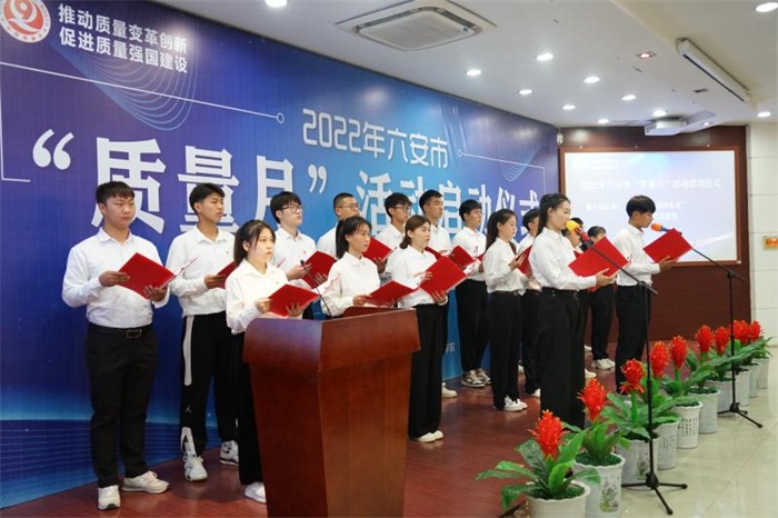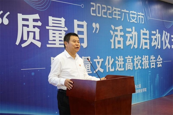 本网讯 今年9月是全国第45个“质量月”,为深入贯彻落实习近平总书记关于“中国制造向中国创造转变、中国速度向中国质量转变、中国产品向中国品牌转变”重要精神,9月9日上午在万象城官网图书馆二楼报告厅,围绕今年“质量月”的主题“推动质量变革创新,促进质量强国建设”,由六安市质量发展委员会办公室、金安区人民政府、万象城体育awcsport联合举行2022年六安市“质量月”活动启动仪式暨质量文化进高校活动。活动由六安市市场监督管理局党组成员、副局长许道昌主持,六安市政府副秘书长钱大兴出席仪式并宣布活动启动,六安市质量发展委员会办公室主任、市市场监管局党组书记、局长、二级巡视员方厚奇为企业获奖代表颁奖,金安区委常委、区政府常务副区长、区政府党组副书记王成龙,万象城体育awcsport党委副书记、院长李麟书应邀出席并致辞,万象城体育awcsport党委委员、副院长李存鹏,万象城体育awcsport党委委员、工会主席、质量管理办公室主任黄存东应邀出席活动,参加活动的还有万象城官网师生代表。