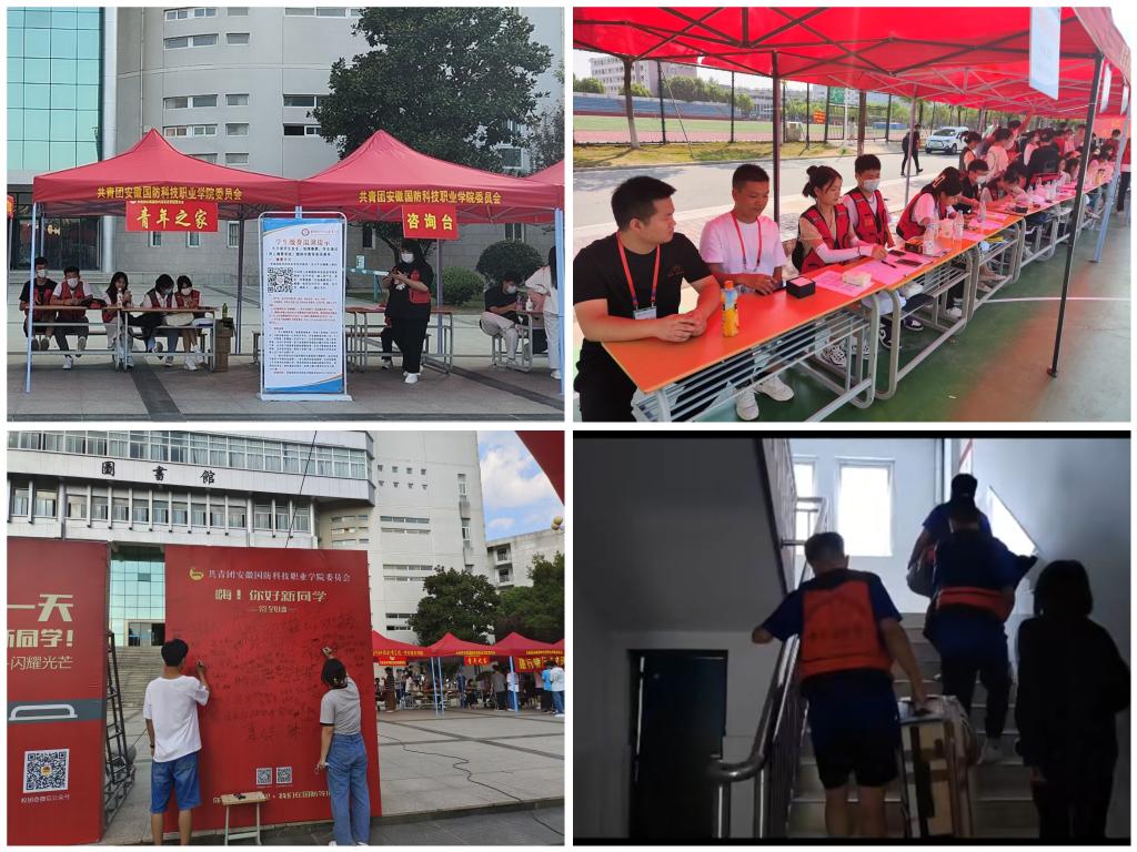 本网讯(团委 罗丞筠)金秋九月,迎四海新生。9月17日至18日,安徽国防科技职业学校喜迎来自全国各地的2022级莘莘学子。为了配合学校迎新工作高效有序的开展,给新生及家长们留下温馨的第一印象,校团委组织了共230余名志愿者投身迎新志愿服务中去。