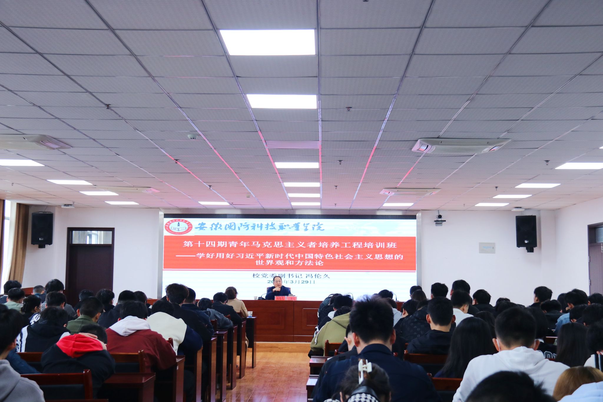 本网讯(校团委 罗丞筠)为进一步学习贯彻党的二十大精神,提高万象城官网团学骨干对习近平新时代中国特色社会主义思想的理解和认识。3月29日下午,校党委副书记冯伦久以《学好用好习近平新时代中国特色社会主义思想的世界观和方法论》为题,在秉心楼12楼会议室为学校第十四期“青马工程”学员讲授了“带着热气”“接着地气”的“青马工程”第二课。校院专兼职团干部、149名青马学员全程听讲,校团委副书记张凤主持讲座。