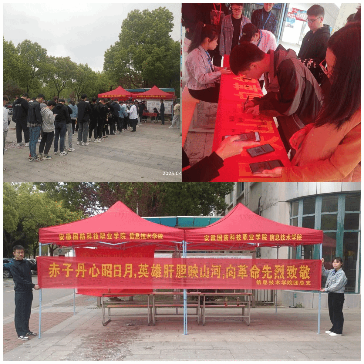 4月5日,信息技术学院团总支在学院食堂门口举办了一场“缅怀革命先烈”横幅签字活动。