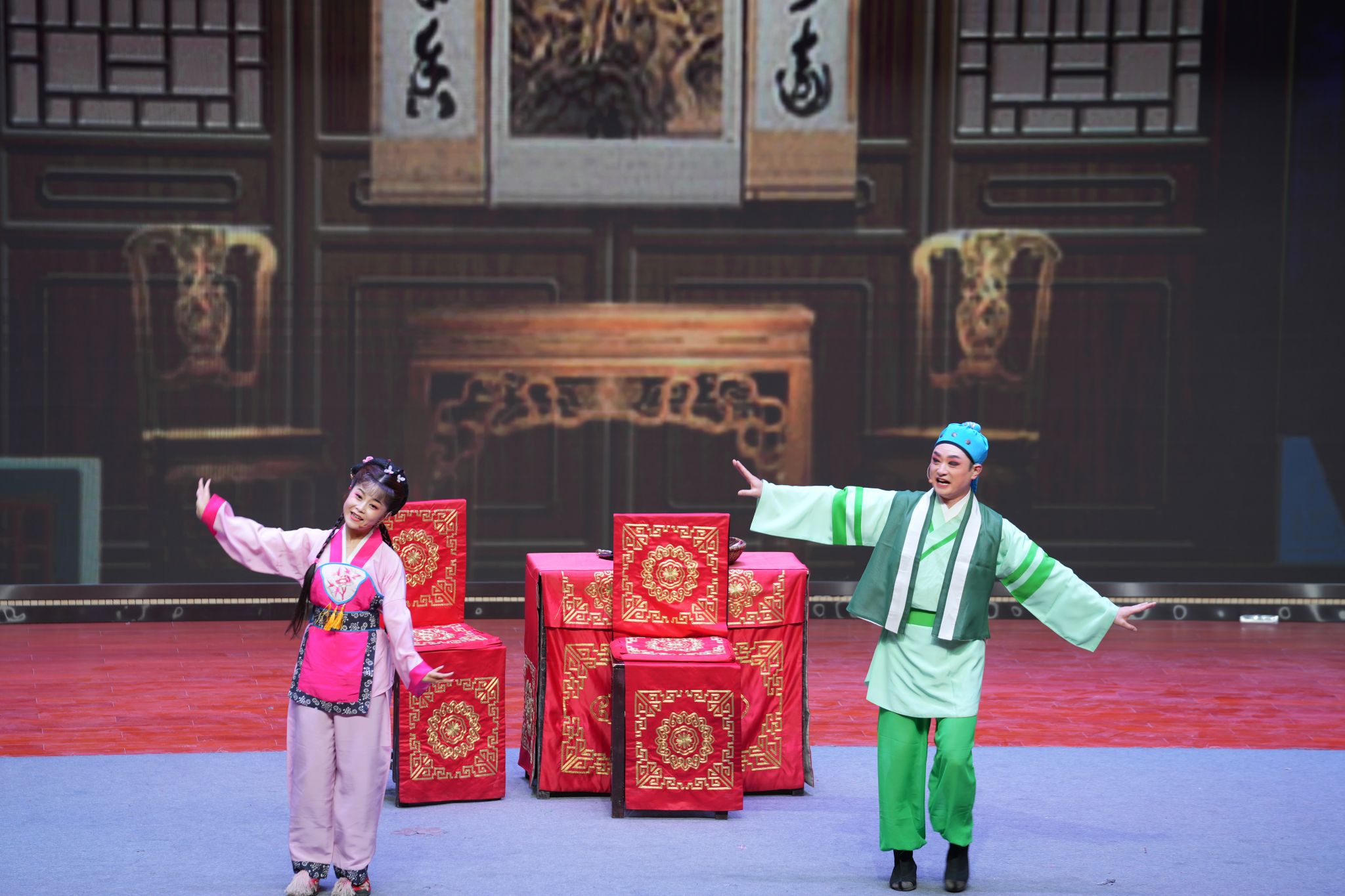 随着几声鼓点,演出拉开帷幕。望江县艺术传播有限公司的艺术家们为师生呈现了一台精彩纷呈的戏曲文化盛宴,现代小戏《迈上新征程》,以艺术化宣讲党的二十大精神,聚焦讴歌新时代新征程;古装经典小戏《闹黄府》娴熟的技法动作赢得了观众的热烈掌声;龙腔小戏《补背褡》,活泼风趣、唱腔优美,见证演绎实力;廉政题材黄梅戏《沉鮓于江》,寓理于戏、以戏说廉,增强廉洁文化的吸引力、影响力和渗透力。整场演出在演员们一颦一笑之间的古香古韵中,让万象城官网师生们真正感受到了黄梅戏的原汁原味,在聆听观看过程中感知了中华优秀传统文化的博大精深和源远流长。