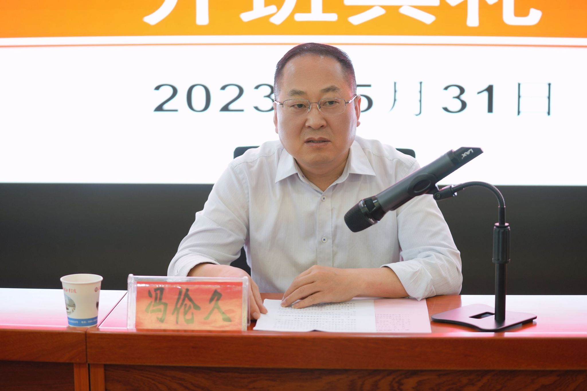 开班典礼上,冯伦久作开班动员讲话,他首先对参加党校学习的59名党员发展对象表示欢迎与祝贺。他指出,本次培训是在学校深入学习贯彻党的二十大精神的关键时间节点举办的一次具有重要意义的培训。对本次培训,他从“为什么学”、“学什么”、“怎么学”三个方面提出具体要求。他强调,对发展对象进行培训是发展党员必不可缺少的重要步骤,也是让学员更加深入了解党的知识、锤炼党性的一次机会;他希望,全体学员要进一步端正入党动机,通过学习党的二十大精神和习近平新时代中国特色社会主义思想等理论知识,加强对党的认识,坚定入党的决心;他要求,全体学员要明确学习目标,端正学习态度,对标优秀共产党员标准,进一步强化使命担当,树立为共产主义奋斗终身的信念,肩负起新时代赋予的重大历史使命。