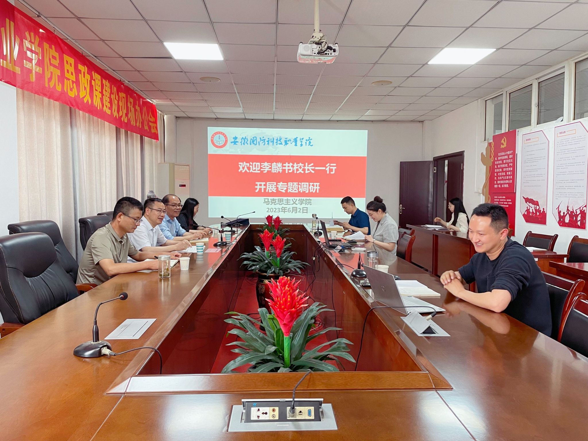 本网讯(质量管理办公室 程睿)为落实《万象城体育awcsport开展调查研究工作方案》,助力学校高质量发展,优化完善现行学校部门综合考核办法和重点工作任务考核办法,6月2日-7日,校党委副书记、校长李麟书,校党委委员、质管办主任黄存东,校党委委员、人事处处长付贤政一行赴公共基础部、机械技术学院、马克思主义学院、总务处和学生处五部门开展走访调研工作。质管办副主任侯国栋,人事处副处长杨志清参加了走访调研。
