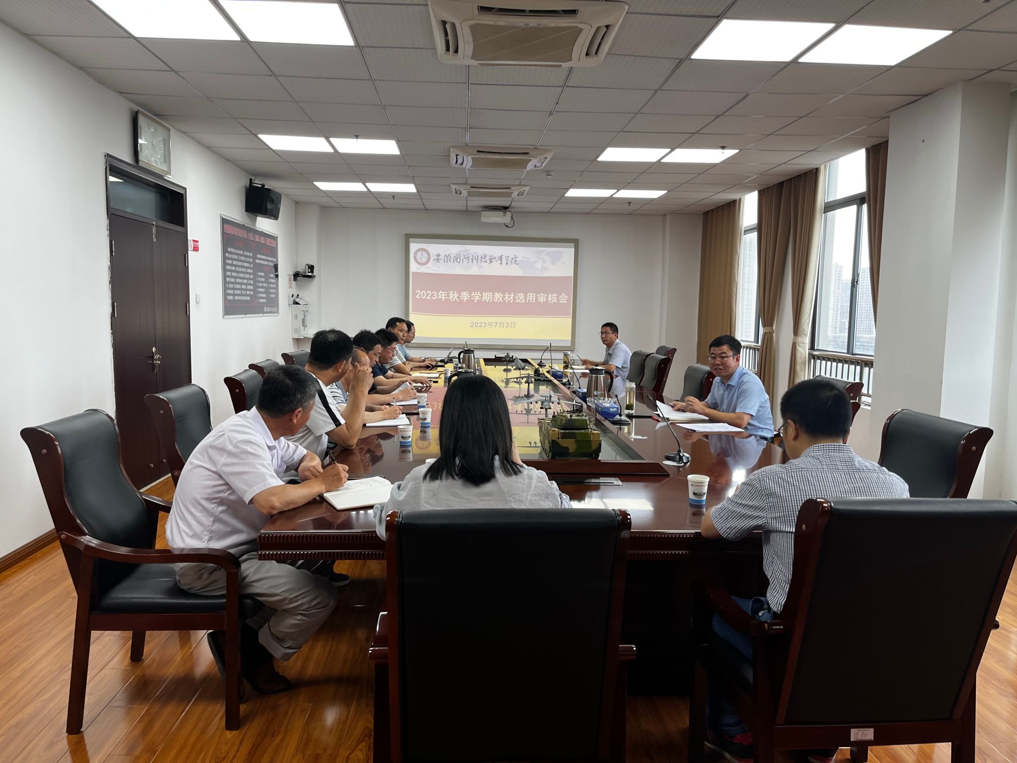 本网讯(教务处 叶金芝)7月3日下午,学校在秉心楼11楼第一会议室组织召开了2023年秋季教材选用审核会议。党委委员、副校长、教材选用委员会主任李存鹏出席会议。学校教材选用委员会成员参加会议。会议由党委委员、教务处处长朱修传主持。