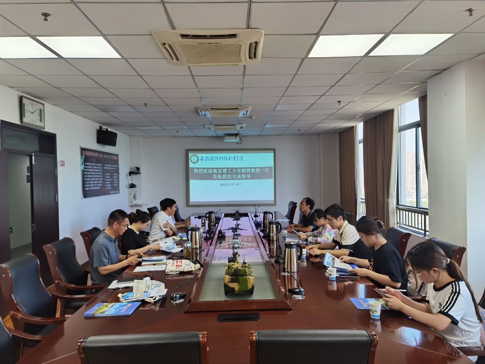本网讯 8月4日,南京理工大学教授、博士生导师顾辉一行来校就军工精神的传承及育人实践开展调研交流,校党委书记余嗣元热情接待了来宾,并在秉心楼第一会议室举行座谈会。学校宣传部、教务处、党政办等相关职能部门负责同志参加了座谈会。
