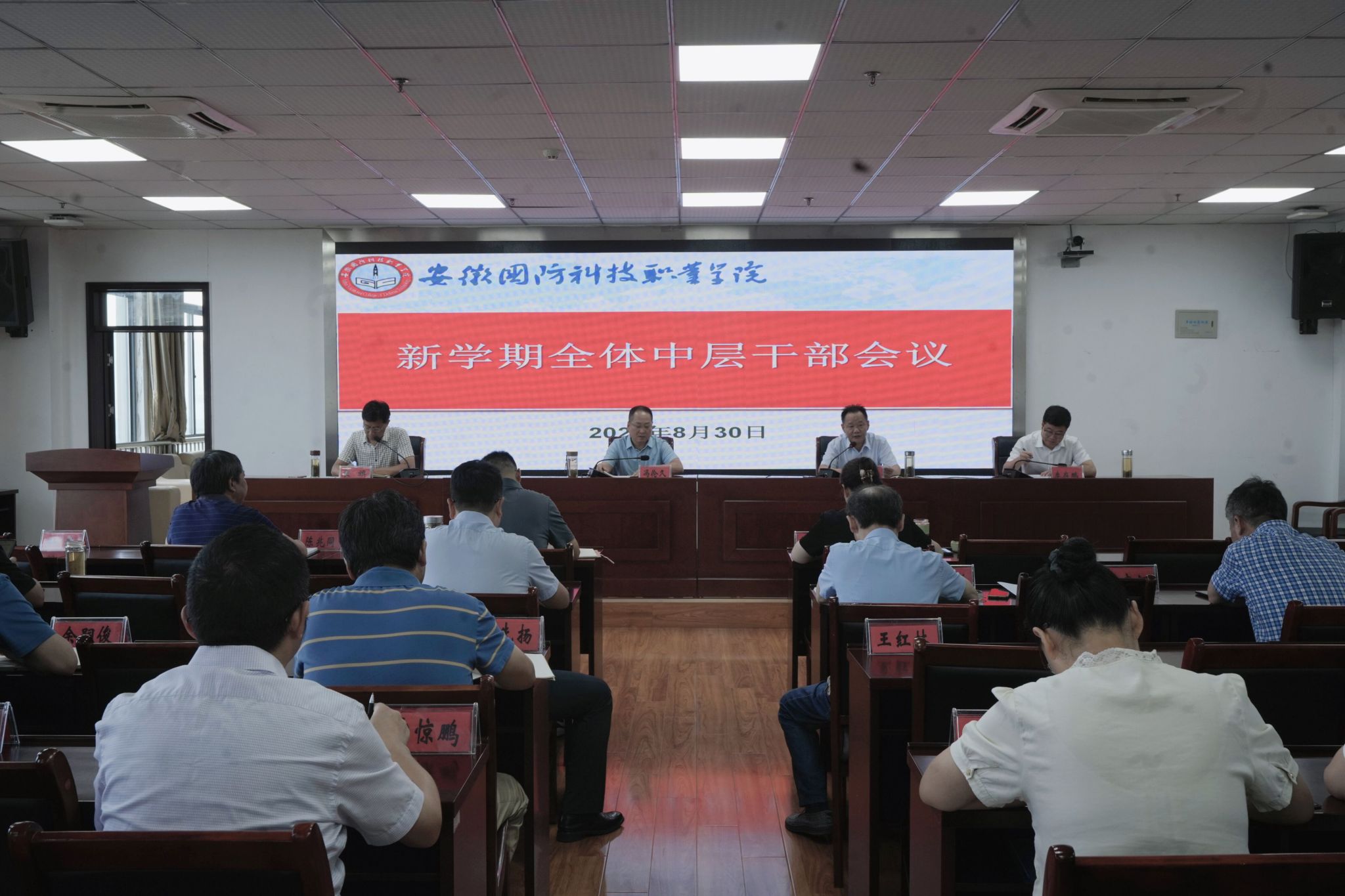 会上,副校长袁旗通报了上半年及暑期重点工作。他指出,在各单位、部门的共同努力下,较好地完成了“双高计划”创建、招生就业、教育教学、人才队伍、后勤保障等阶段性工作。他强调,与会干部要抓紧做好开学各项准备工作,为师生返校营造良好的学习、生活环境;要深入推进平安校园建设,切实维护学校安全稳定。