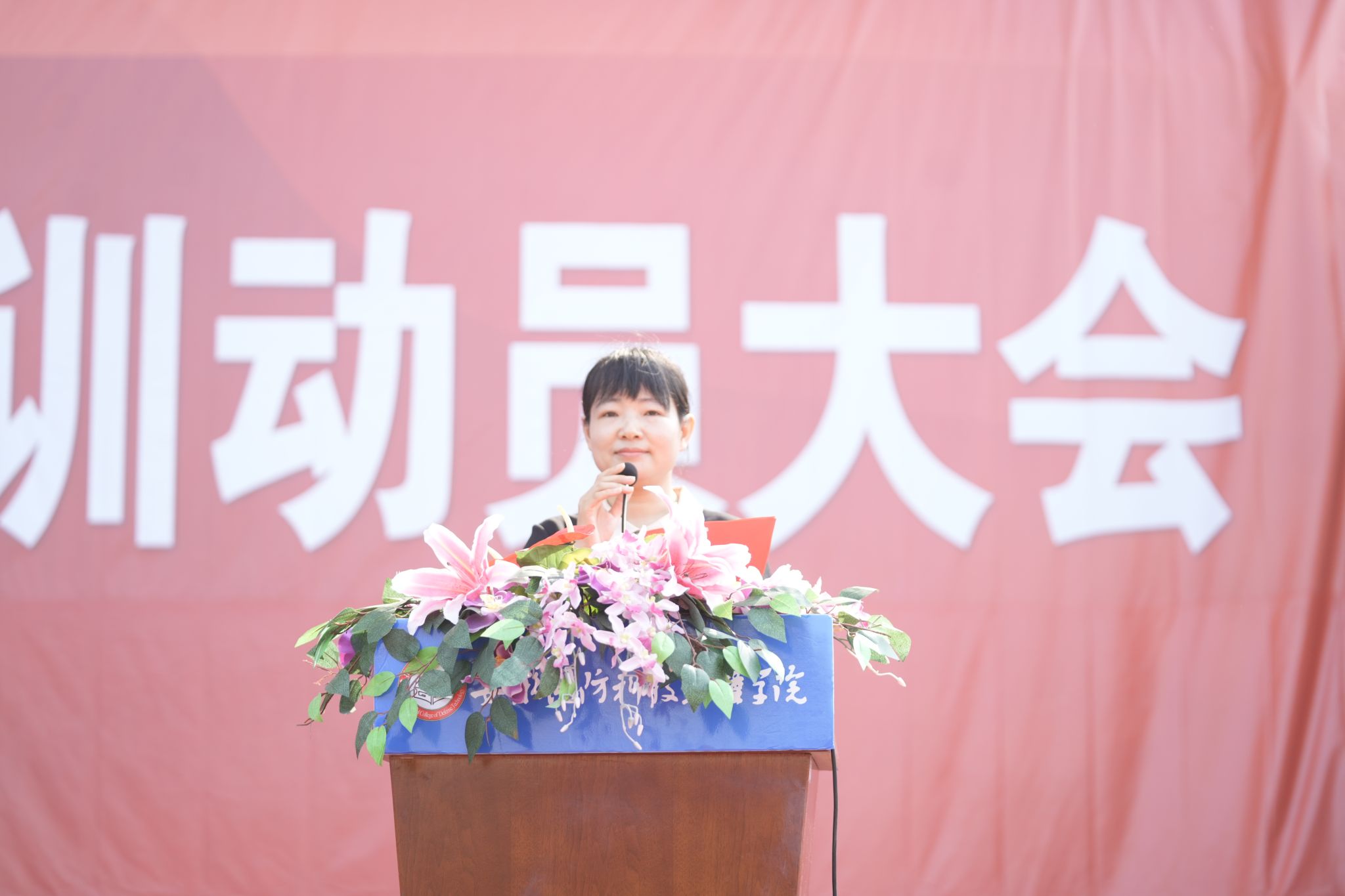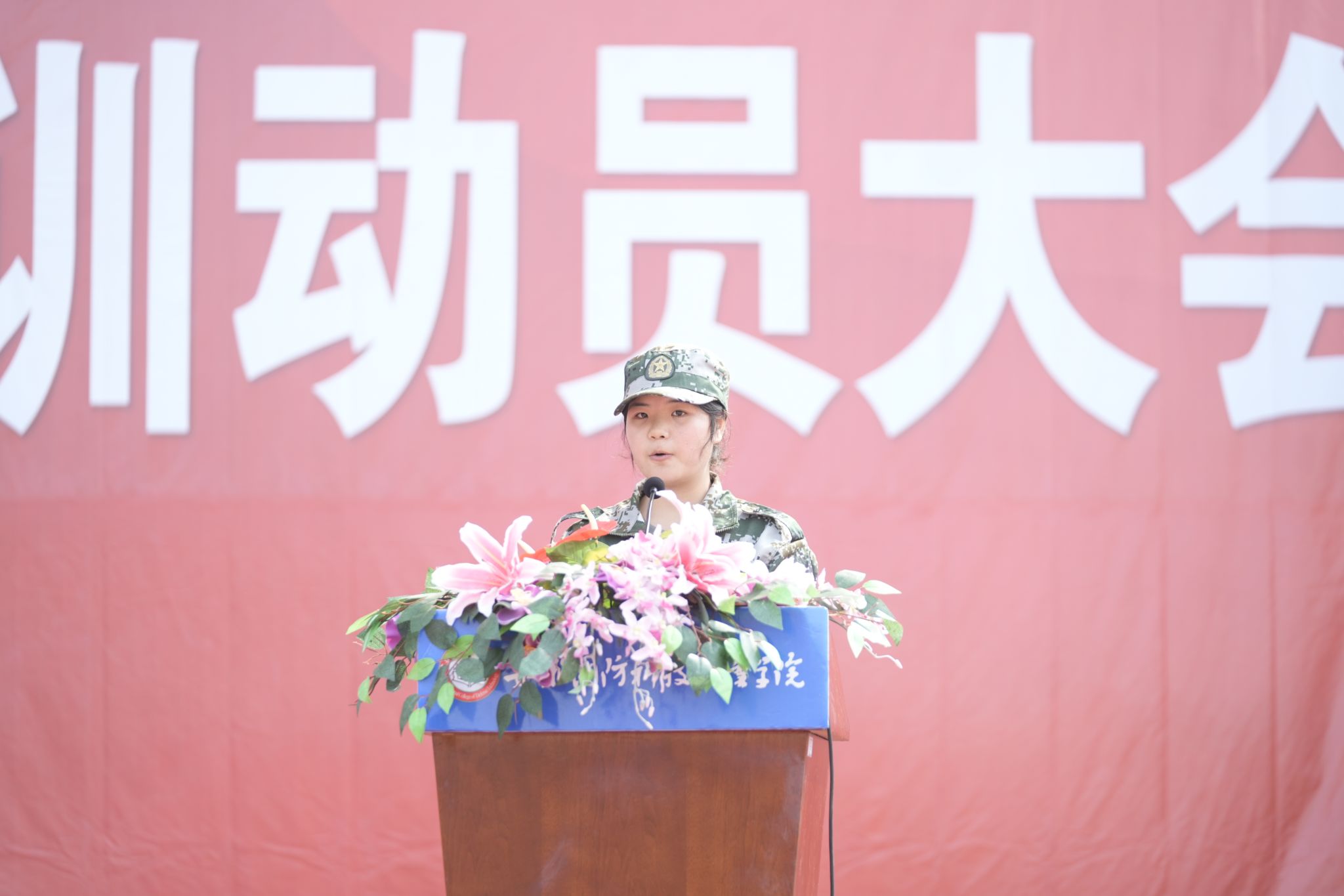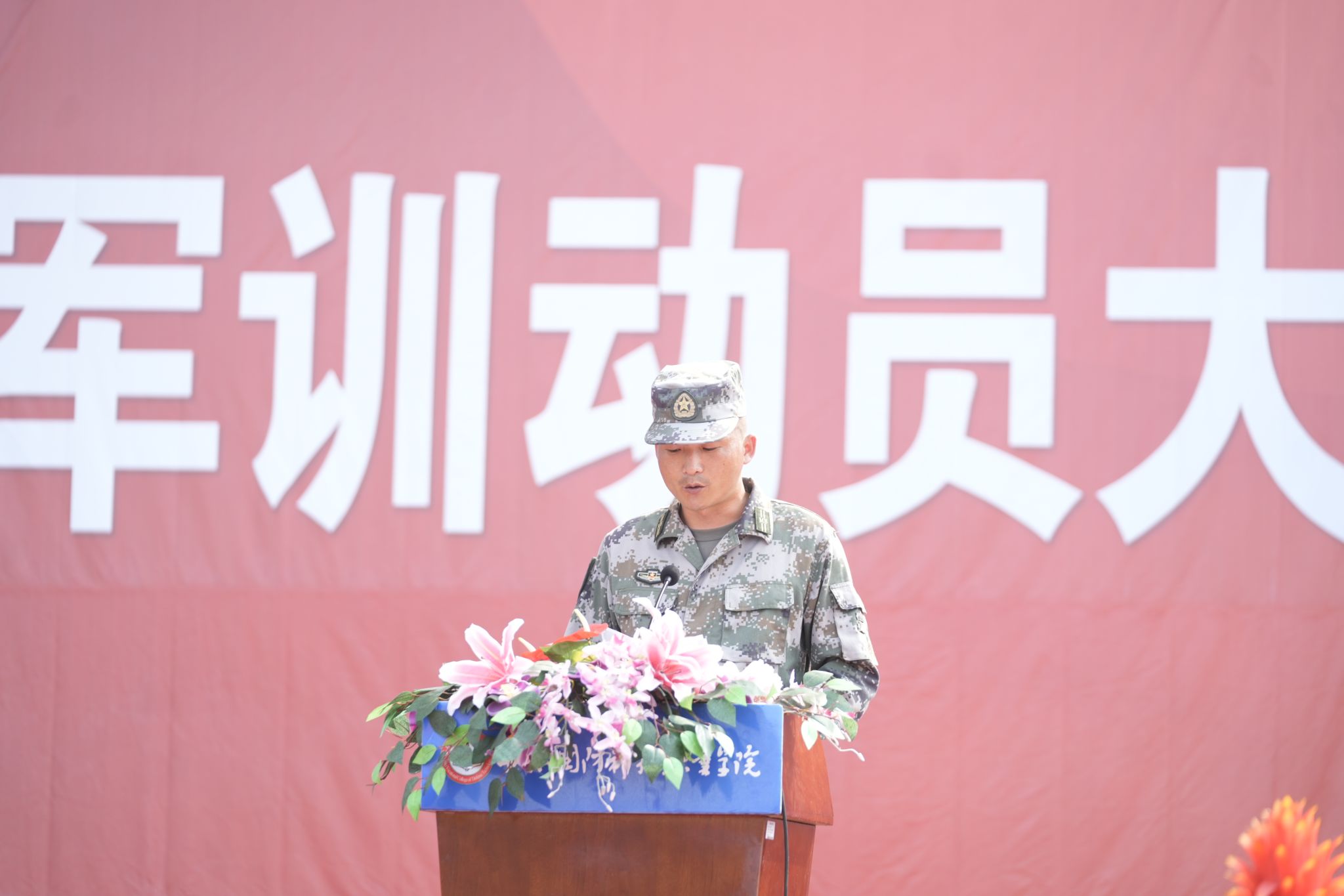 在军训动员大会上,副校长袁旗作军训动员。袁旗指出,戎装上阵、参加军训是同学们作为国防职院新主人的第一次精彩亮相和披挂出征,军训是大学生必须认真履行的法定职责,是砥砺青春磨练意志的难得机遇,是感受军营生活的有效形式。他要求,要“听党指挥”,在思想上加强军事理论学习,深刻理解党对军队绝对领导的重大意义,在行动上坚决服从命令与指挥。要“能打胜仗”,发扬一不怕苦二不怕累的精神,敢于并善于同自己懒散思想和行为作彻底斗争,在军训场上争做不惧苦累的铁血男儿和灿然怒放的铿锵玫瑰。要 “作风优良”,加强组织纪律性,严格遵守军训各项要求和校纪校规,以一流的军姿军容和军人素质,展现国防学子一流的军人风貌。