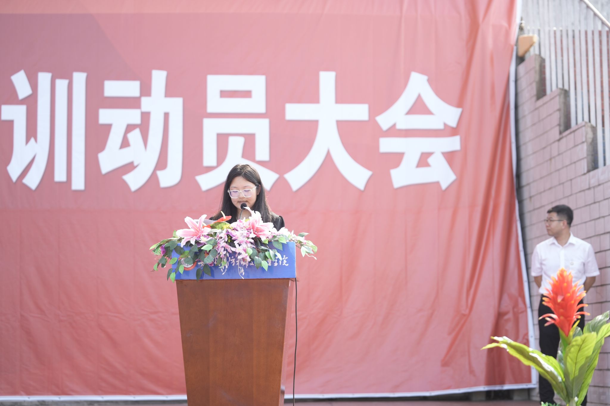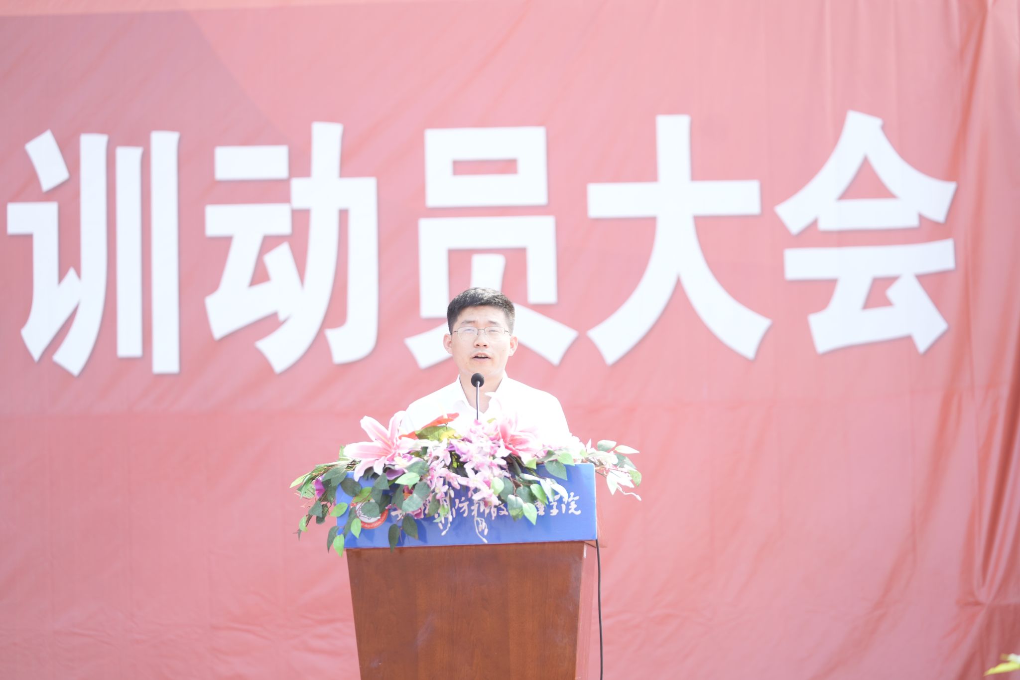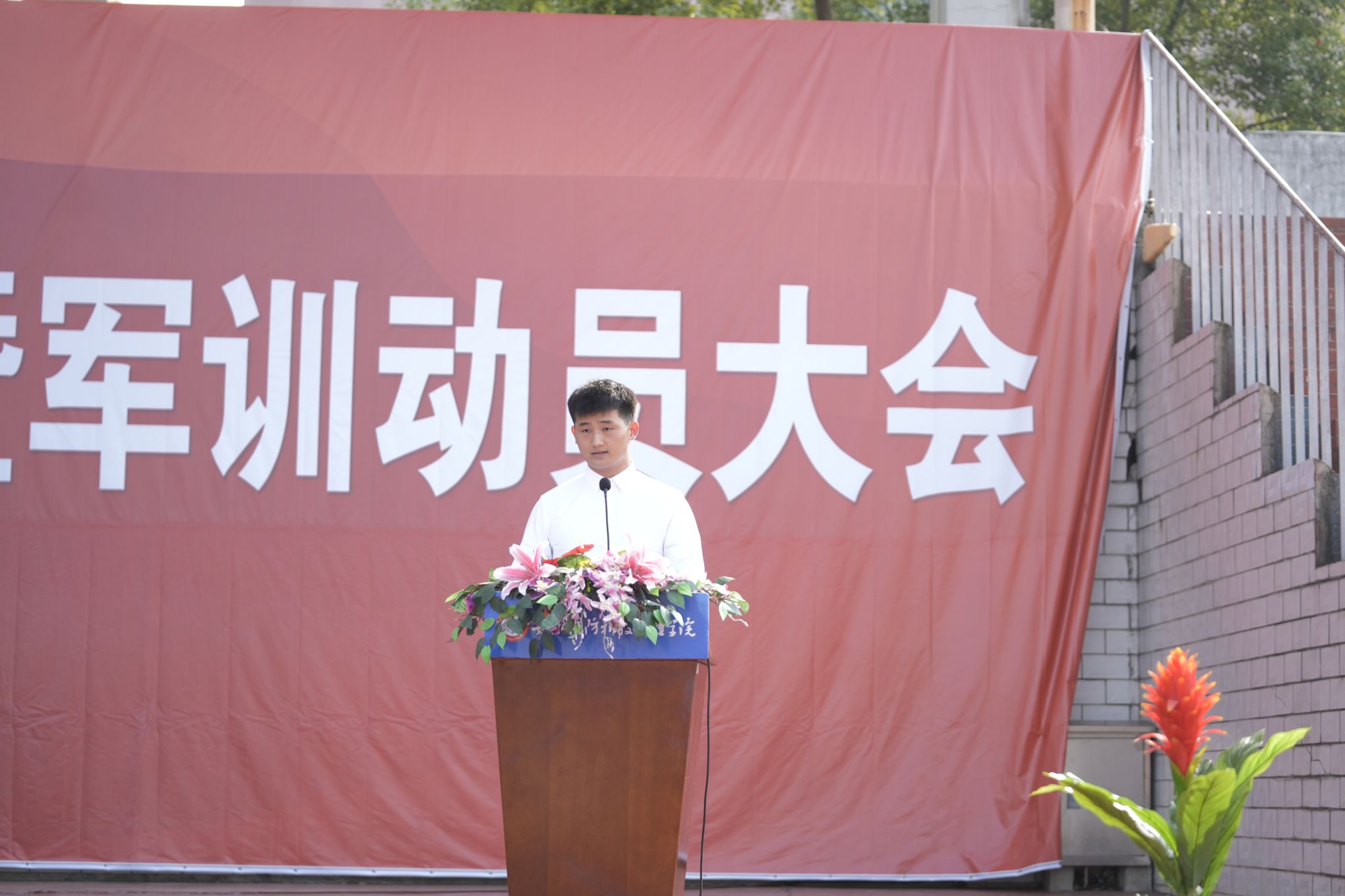 在军训动员大会上,副校长袁旗作军训动员。袁旗指出,戎装上阵、参加军训是同学们作为国防职院新主人的第一次精彩亮相和披挂出征,军训是大学生必须认真履行的法定职责,是砥砺青春磨练意志的难得机遇,是感受军营生活的有效形式。他要求,要“听党指挥”,在思想上加强军事理论学习,深刻理解党对军队绝对领导的重大意义,在行动上坚决服从命令与指挥。要“能打胜仗”,发扬一不怕苦二不怕累的精神,敢于并善于同自己懒散思想和行为作彻底斗争,在军训场上争做不惧苦累的铁血男儿和灿然怒放的铿锵玫瑰。要 “作风优良”,加强组织纪律性,严格遵守军训各项要求和校纪校规,以一流的军姿军容和军人素质,展现国防学子一流的军人风貌。