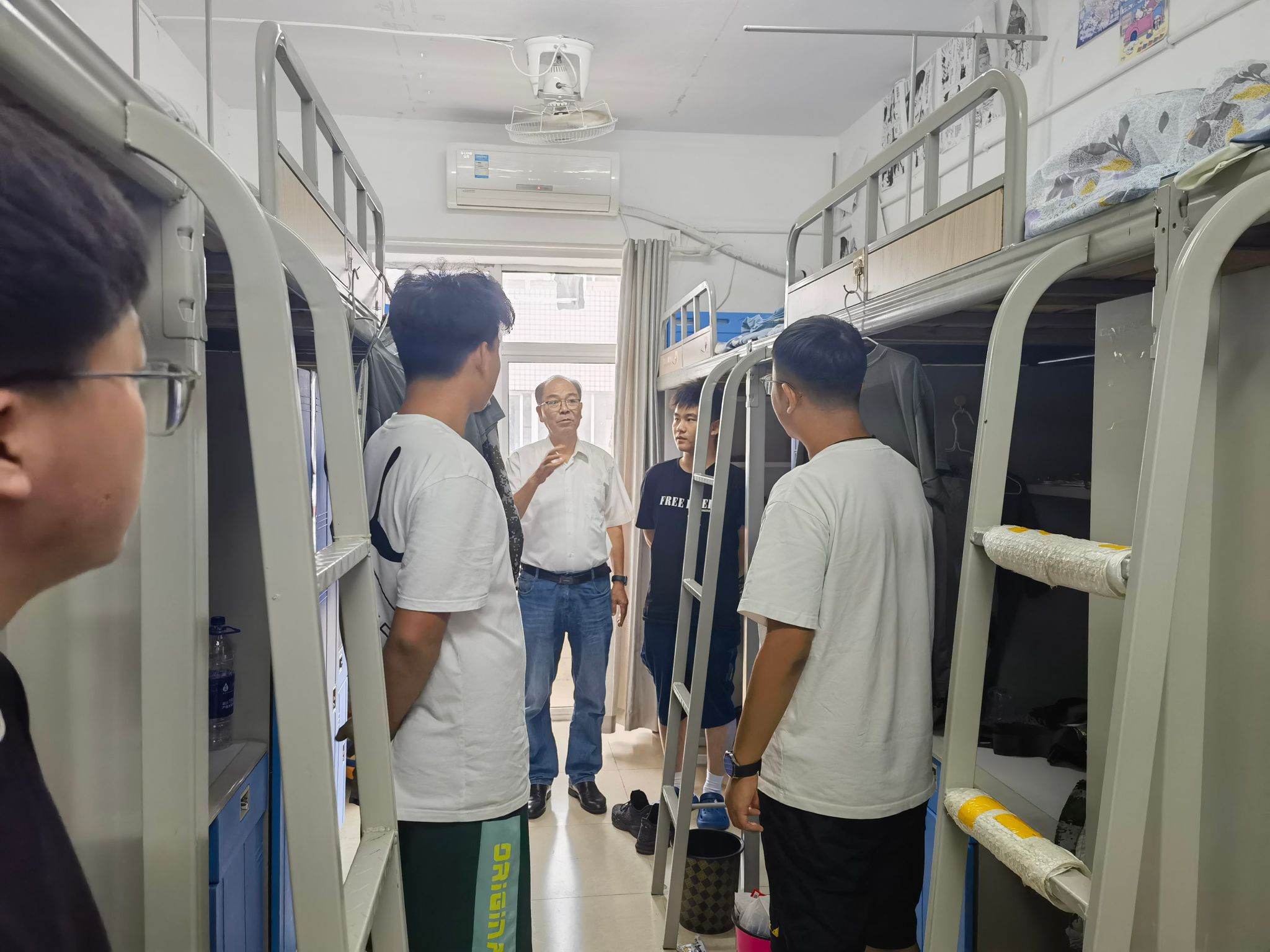 在新生宿舍,李麟书与新生进行了亲切地交谈,从住宿饮食、生活习惯、发展规划等多方面深入了解新生情况,关心新生入住后所遇到的各种问题,并进行及时的沟通,帮助同学们尽快适应新生活。