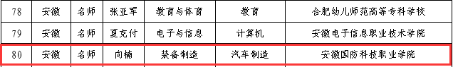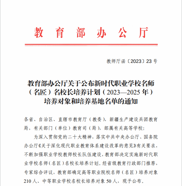 本网讯(组织人事处 王溪)近日,教育部办公厅下发《关于公布新时代职业学校名师(名匠)名校长培养计划(2023-2025年)培养对象和培养基地名单的通知》(教师厅函〔2023〕23号),教育部确定高等职业院校名师(名匠)培养对象210人,万象城官网汽车技术学院向楠教授成功入选高等职业院校名师(名匠)培养对象。
