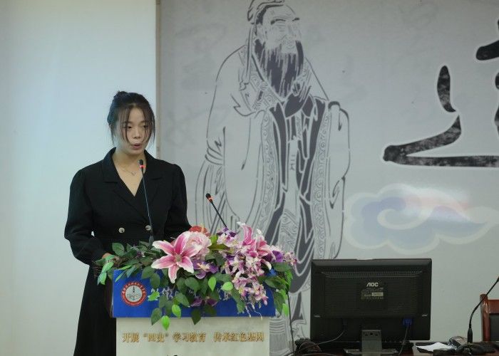 最后,由教师代表王杨老师分享学习“四史”的颇深感悟和体会,他作为新时代的教师,不怕苦,不怕累,苦练本领,扎实学识,牢记习近平总书记的殷殷嘱托,坚守为党育人,为国育才的初心使命,培养更多的人才。从字里行间、铿锵言语中流露出诠释初心、敢于担当的坚定信念。接着由学生代表俎晓敏进行分享,作为一名新时代的大学生,要与时俱进,勇于突破,坚守初心,奋发有为。