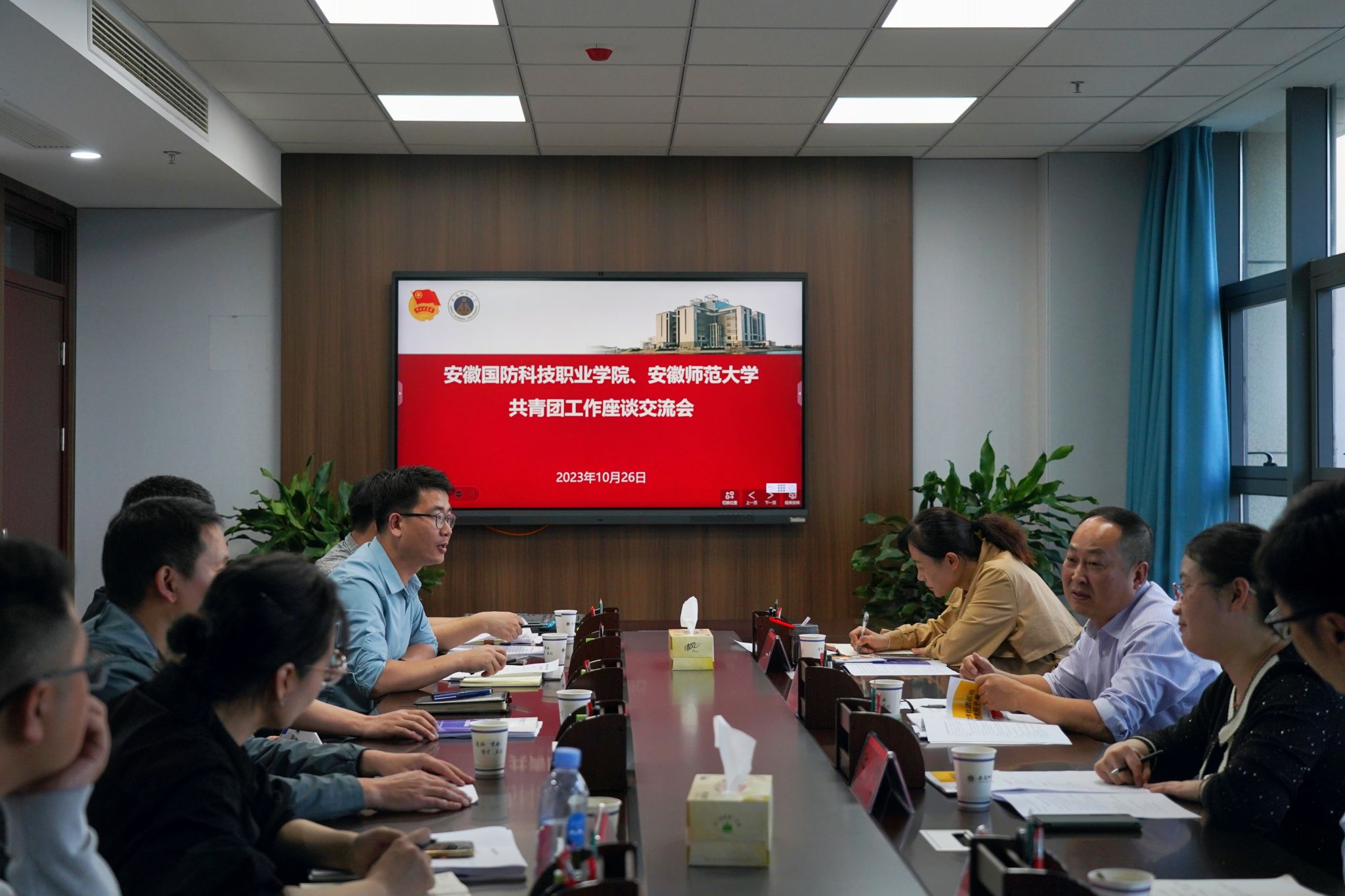 随后,两校围绕大学生思想引领、暑期“三下乡”社会实践、学生社团改革及运行机制,青马工程培养机制等方面工作进行了深入交流和分享。