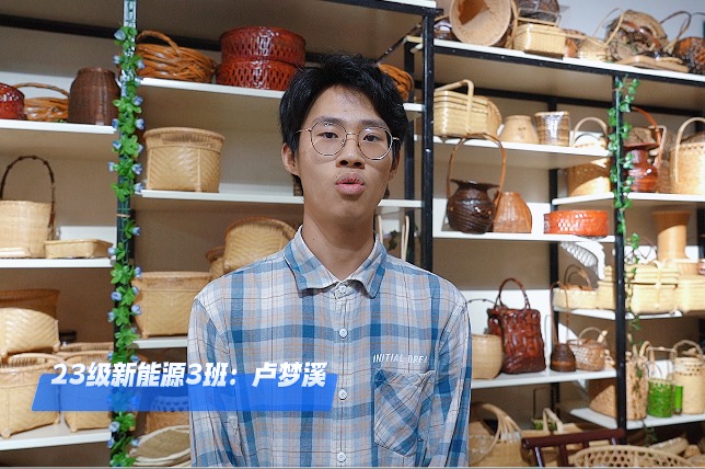 来自23新能源3班的卢梦溪同学感悟道:今天有幸体验竹编非遗,结合思政老师课堂讲授,让我感知到中华文化的博大精深;同时我也认识到非遗传承是需要代代相传,作为新时代的大学生,要肩负起发扬优秀传统文化的大任。