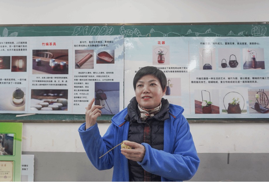 随后来到邹老师的教室,同学们跟着邹老师一起学起了竹编,邹老师和师傅们由浅入深地传授着编法,同学们认真地学着,纷纷表示:看着容易,自己实际做起来还是有难度,一件成品的背后凝聚着工人们的心血。