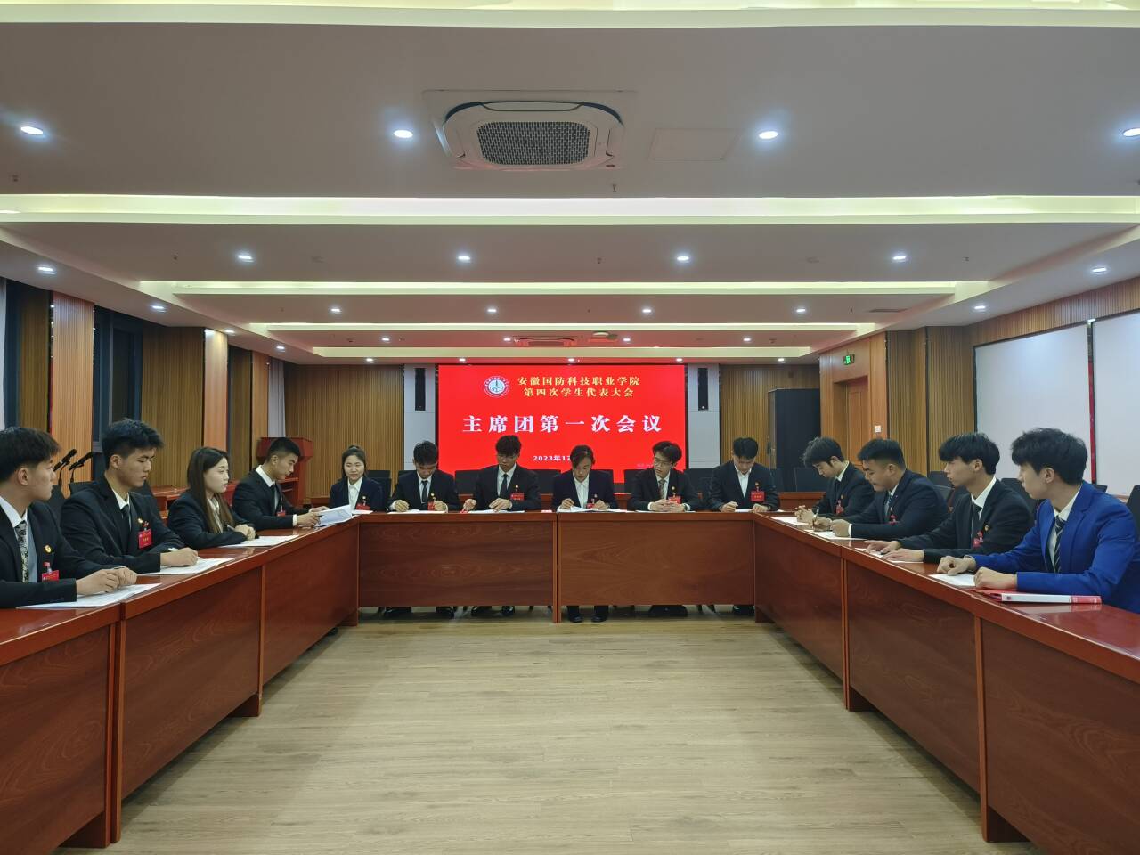 预备会议后,大会主席团在产教融合中心第一报告厅召开第一次会议。主席团成员审议并通过了“两代会”日程安排、“两委”委员候选人预备人选提名情况说明、通报“两委”委员候选人预备人选名单、报告学代会提案征集、整理情况。