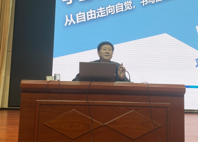 刘世保教授以《从自由走向自觉,书写自己的青春之歌》为题,从“作为学生干部,我在工作中遇到的难点、疑点是什么;我最希望得到的帮助是什么”等问题为切入点,与学生深入互动交流,带领同学们共同梳理了学生工作中所遇到的难点、疑点,分析了学生干部常见困惑和如今最想解决的问题,从赋予责任、指导规划、升华品格等方面阐述了学生干部成长的正确路径。同时,结合青涩青春的五个特征,通过对自由青春、自主青春、自信青春、自觉青春的深入思考,提出了做好学生工作的最佳方法和解决问题的最优方案。他希望广大青年学生干部在学生工作中积累经验、增加情商、提升格局,积极追求政治进步,在为祖国、为人民、为民族、为人类的奉献中书写自己的青春之歌。