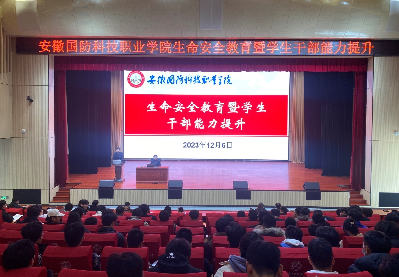 本网讯(学生处 孙洋洋)为提升学校生命安全教育质量,提高学生干部综合素质,12月6日下午,学校在产教融合中心多功能报告厅组织开展生命安全教育暨学生干部能力提升讲座。本次讲座特别邀请了北京青年政治学院刘世保教授。各二级学院党总支书记、副书记、专兼职辅导员、学生处全体成员、校院学生会干部、社团负责人、各班级团支部书记、副班长约500余人参加讲座。讲座由校党委委员、副校长袁旗主持。