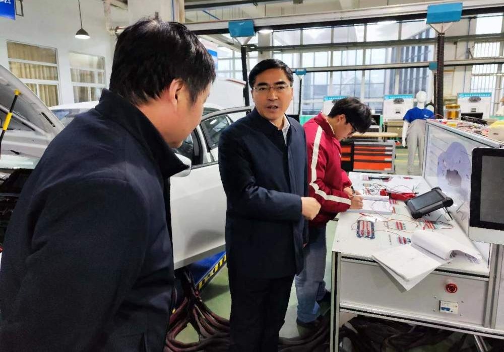 汪谦慎一行首先参观了国防教育体验馆,仔细听取了学校军工魂文化广场、国防教育体验馆等军工设施建设情况,对学校积极面向中小学生和社会各界广泛开展国防和爱国主义教育表示肯定;随后,深入学校国家级汽车检测与维修技术实训基地、国家级数控实训基地和省级数控技术技能大师徐俊工作室并看望了正在备赛参加2023年省职业技能大赛的学生,详细了解备赛情况。他对学校持续优化专业布局结构,紧密对接安徽国防科技工业和安徽十大新兴产业发展需求,形成高端装备制造、新一代信息技术、新能源汽车与智能网联汽车等高水平专业群,构建军地共享专业体系的特色做法表示高度赞许。