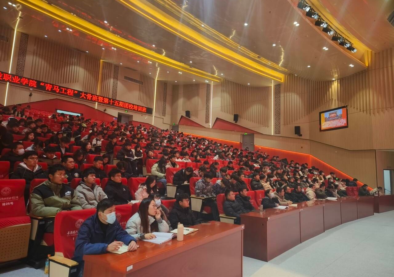 本网讯(团委 罗丞筠)为动员引领团员和青年认真学习领会习近平新时代中国特色社会主义思想,切实提升团学骨干政治素养和理论水平。12月20日下午,校党委书记余嗣元以《开辟马克思主义中国化时代化新境界》为题,为学校第十五期“青马工程”培训班学员讲授了别开生面、内涵丰富的“大思政课”。此次培训讲座由党委委员、信息技术学院院长沙有闯主持,各二级学院团总支书记、校团委工作人员、“青马工程”培训班学员共400余人参加。