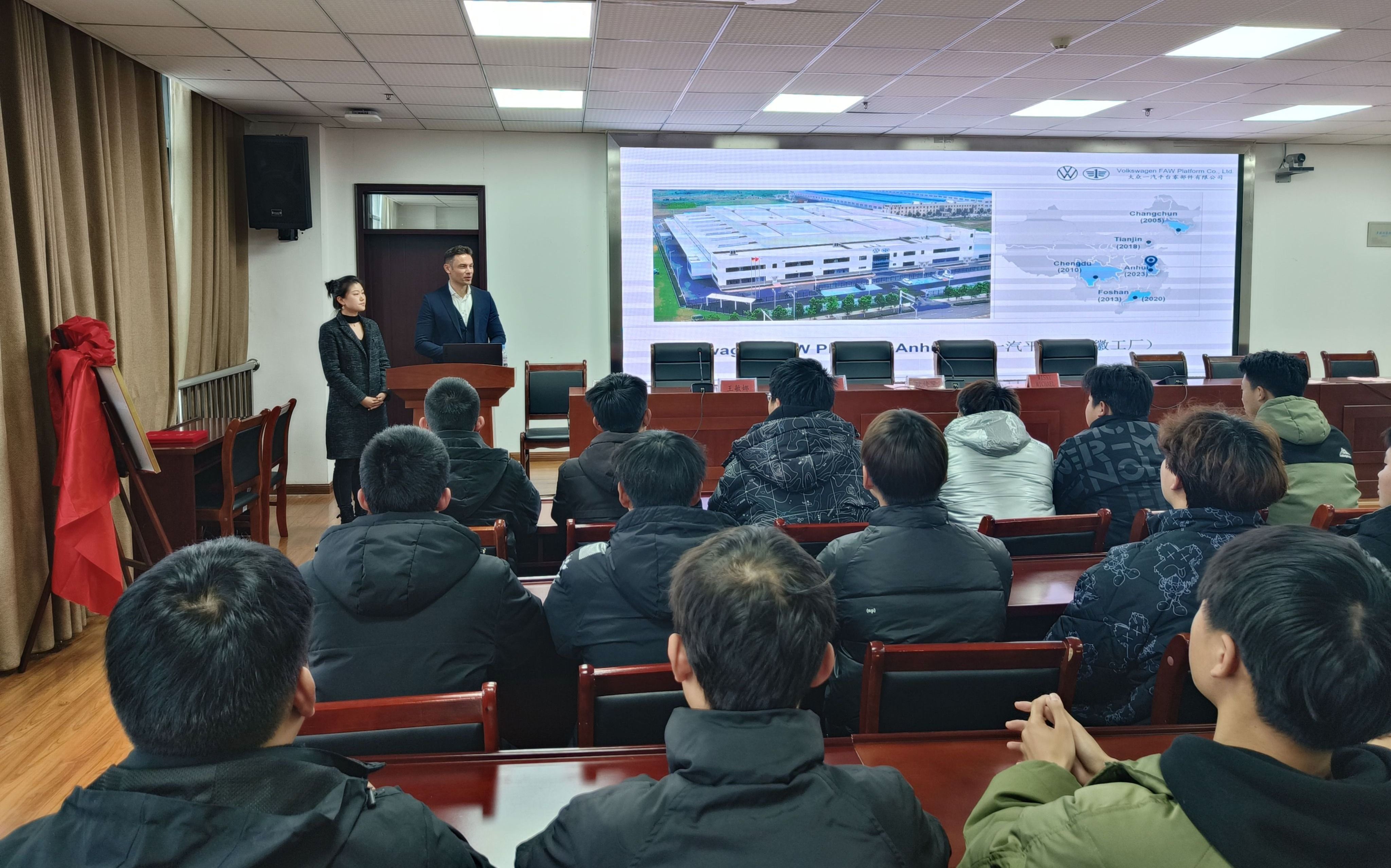 大众一汽平台零部件有限公司安徽公司厂长Wisny Michale、安徽公司副厂长韩维信、公司总部人事部长王敏娜、安徽公司综合主任李洋等企业领导受邀参加。学校党委副书记、校长徐正红,校企合作办主任李中永、汽车技术学院党总支书记孙良平、副院长(主持工作)姜继文、党总支副书记余桂刚,部分工匠班教师及全体工匠班学员参加了开班仪式。仪式由姜继文主持。