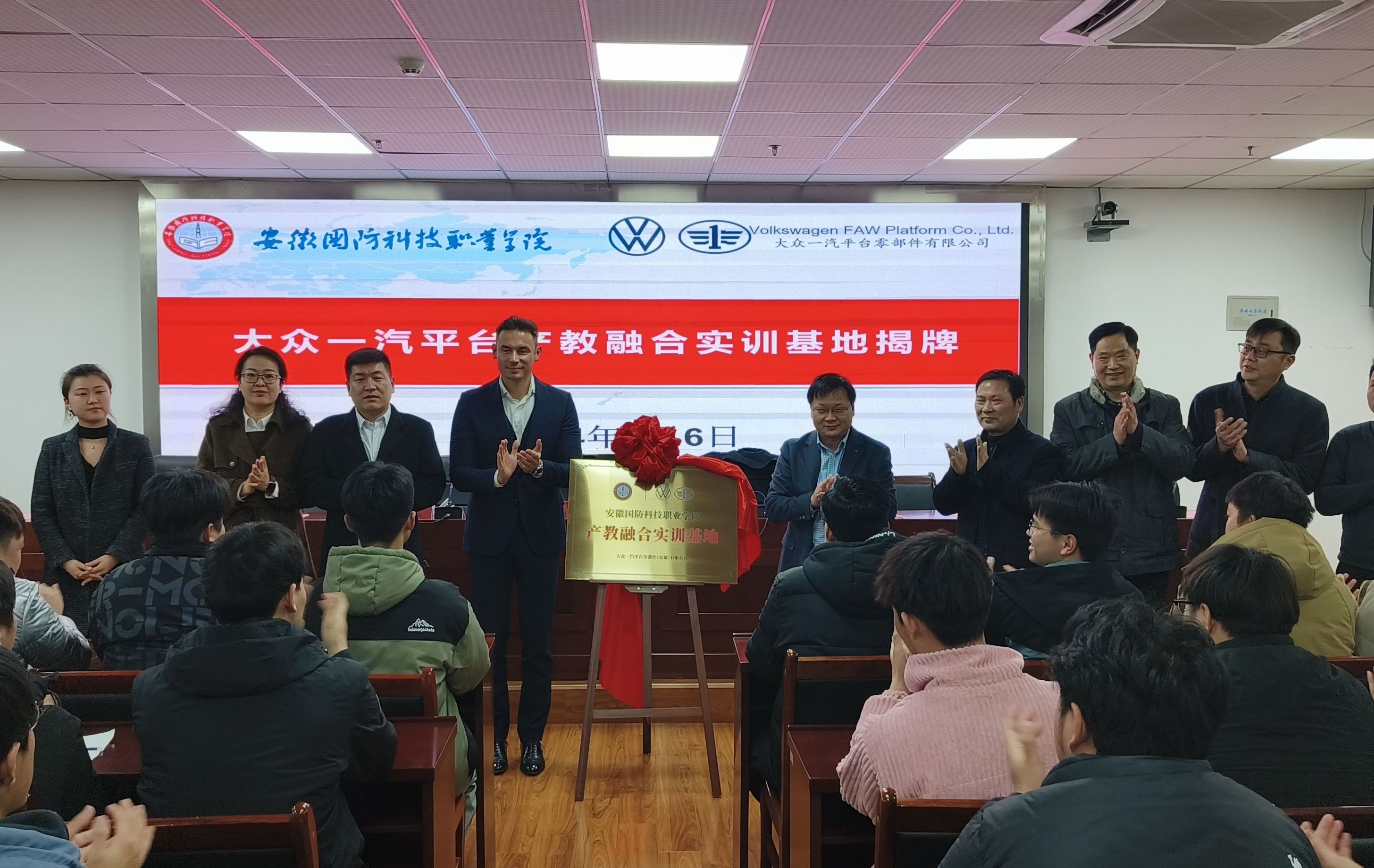 大众一汽平台产教融合实训基地是推进教育资源与产业战略布局相匹配的关键之举,也是高质量培养技术技能型人才,服务安徽“首位产业”发展的应尽之责。学校将积极贯彻安徽省委省政府部署要求,推进大众一汽平台产教融合实训基地建设,聚焦“九个共同”,在专业共建、资源共享、人才共育、技术创新等方面开拓产教融合新局面。