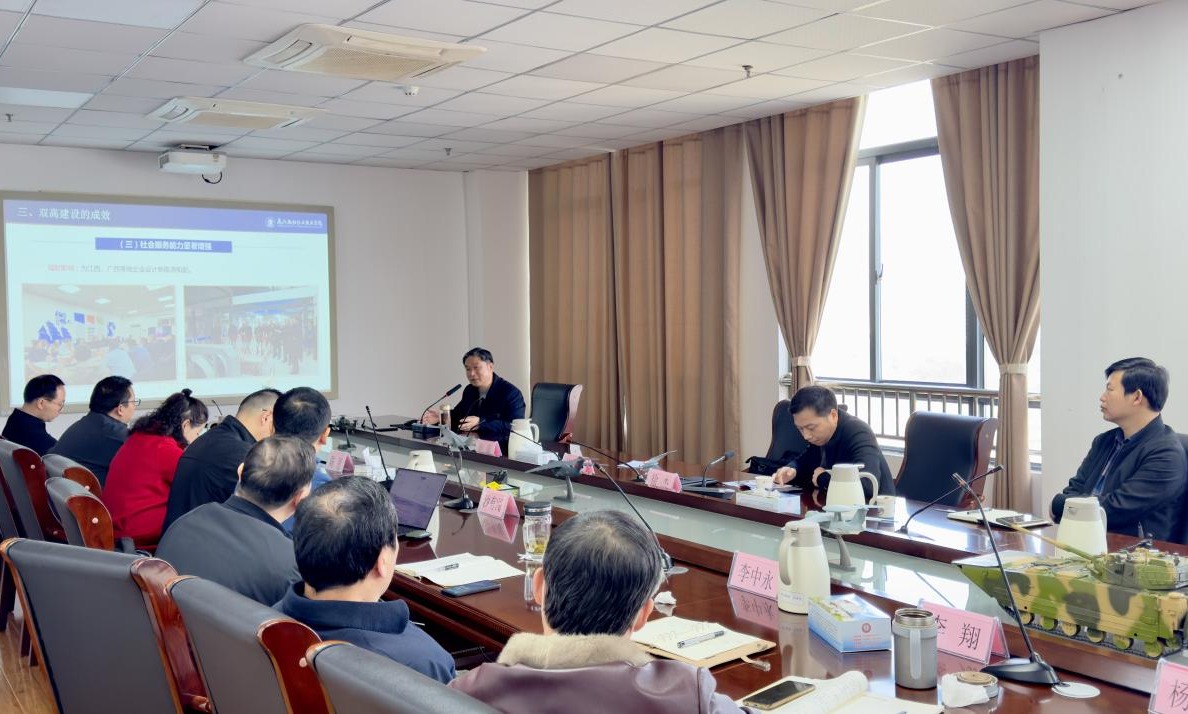 本网讯 为深入推进学校高水平高职院校和专业群建设(以下简称“双高”),提高工作建设质效,3月12日,学校在秉心楼第一会议室召开“中国特色高水平高职学校的探索与实践”专题培训会。此次会议特邀武汉船舶职业技术学院副校长肖亚明教授担任主讲嘉宾,武汉船舶职业技术学院教务处处长兼双高办主任徐杰、双高办副主任赵磊,万象城官网“双高”建设学校层面的主要成员以及“双高”专业群所在学院的负责人和核心成员参加了本次培训,培训由学校党委委员、副校长付贤政主持。