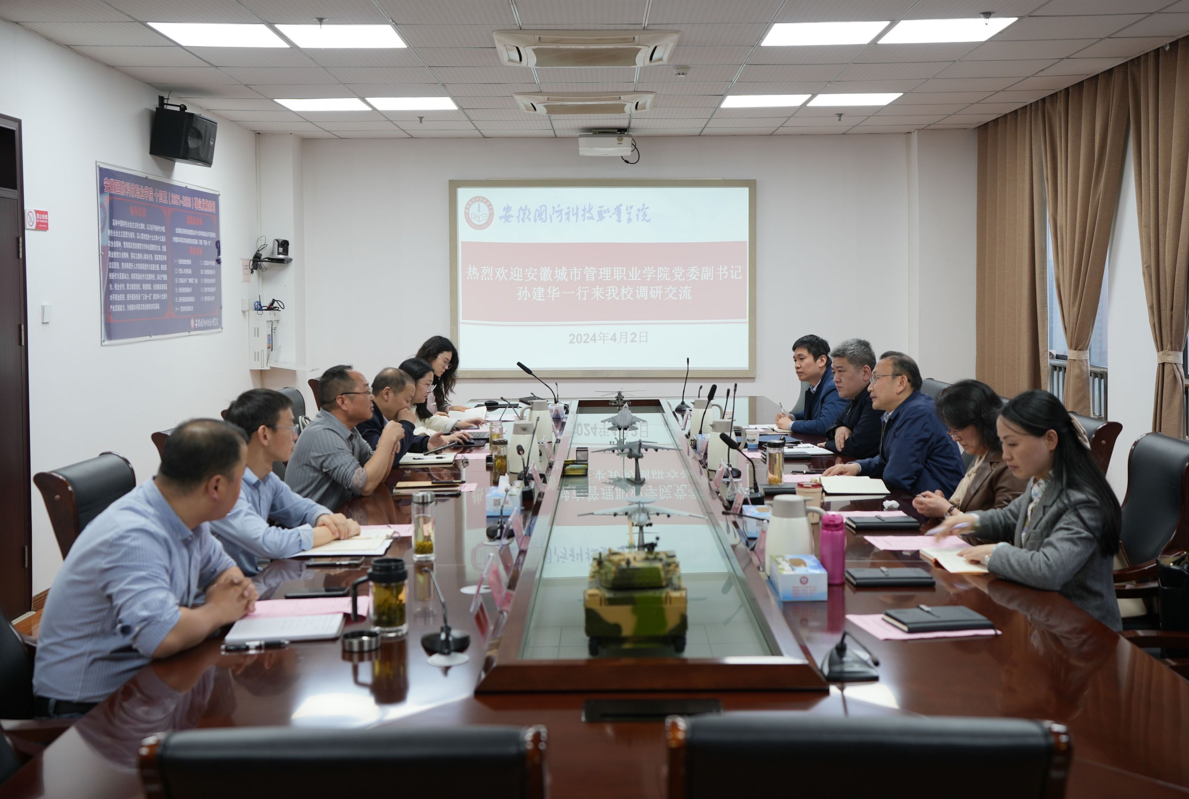 本网讯(组织人事处 孙佳)4月2日上午,安徽城市管理职业学院党委副书记孙建华一行来万象城官网就绩效工资改革及部门综合考核工作开展调研交流。校党委副书记冯伦久及相关部门负责人出席会议,会议由冯伦久主持。