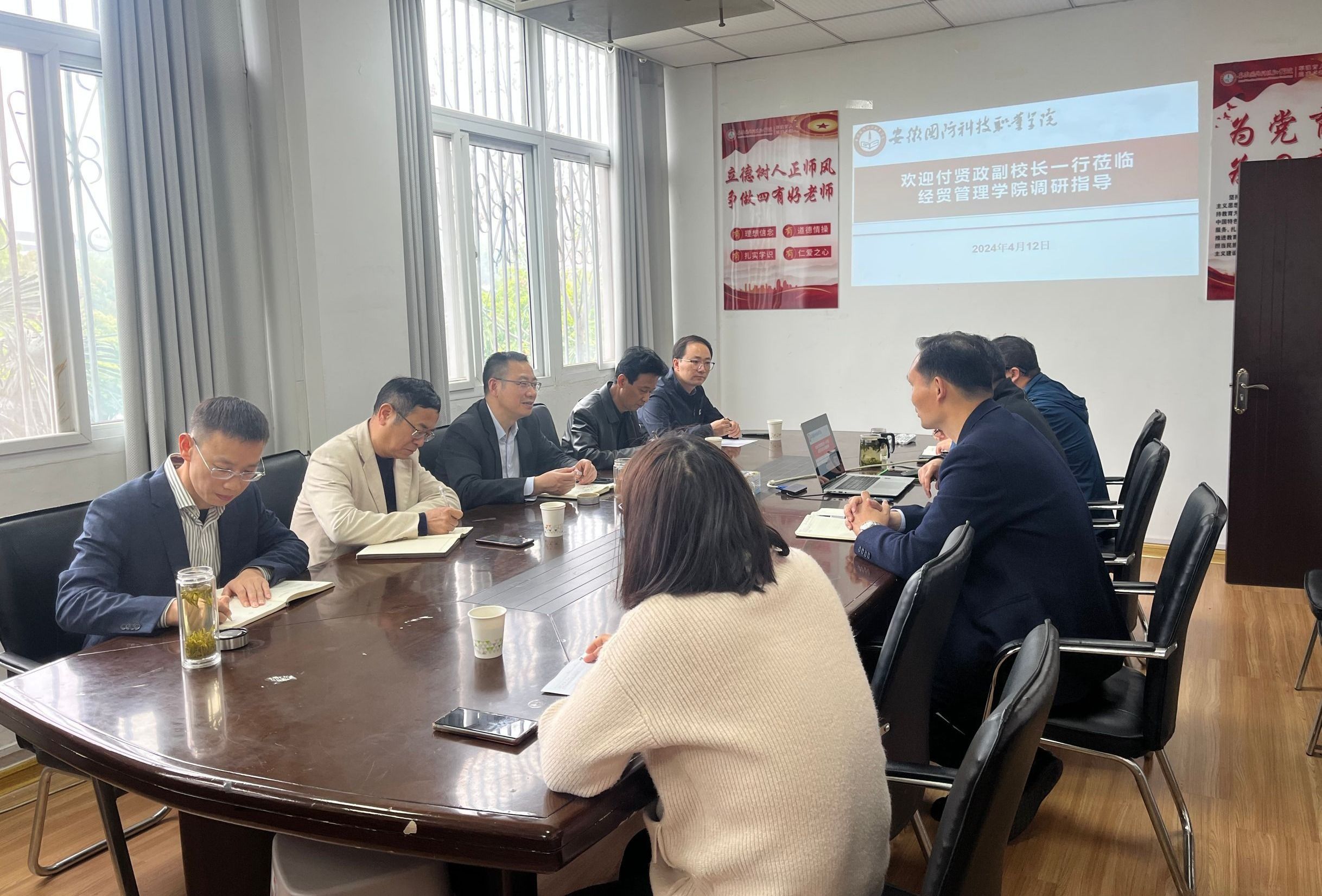 本网讯(经贸管理学院 付玉梅)4月12日上午,学校党委委员、副校长付贤政到经贸管理学院进行调研座谈,学生处、双高办、组织人事处、招生就业办负责人陪同。学院党政班子成员参加座谈。