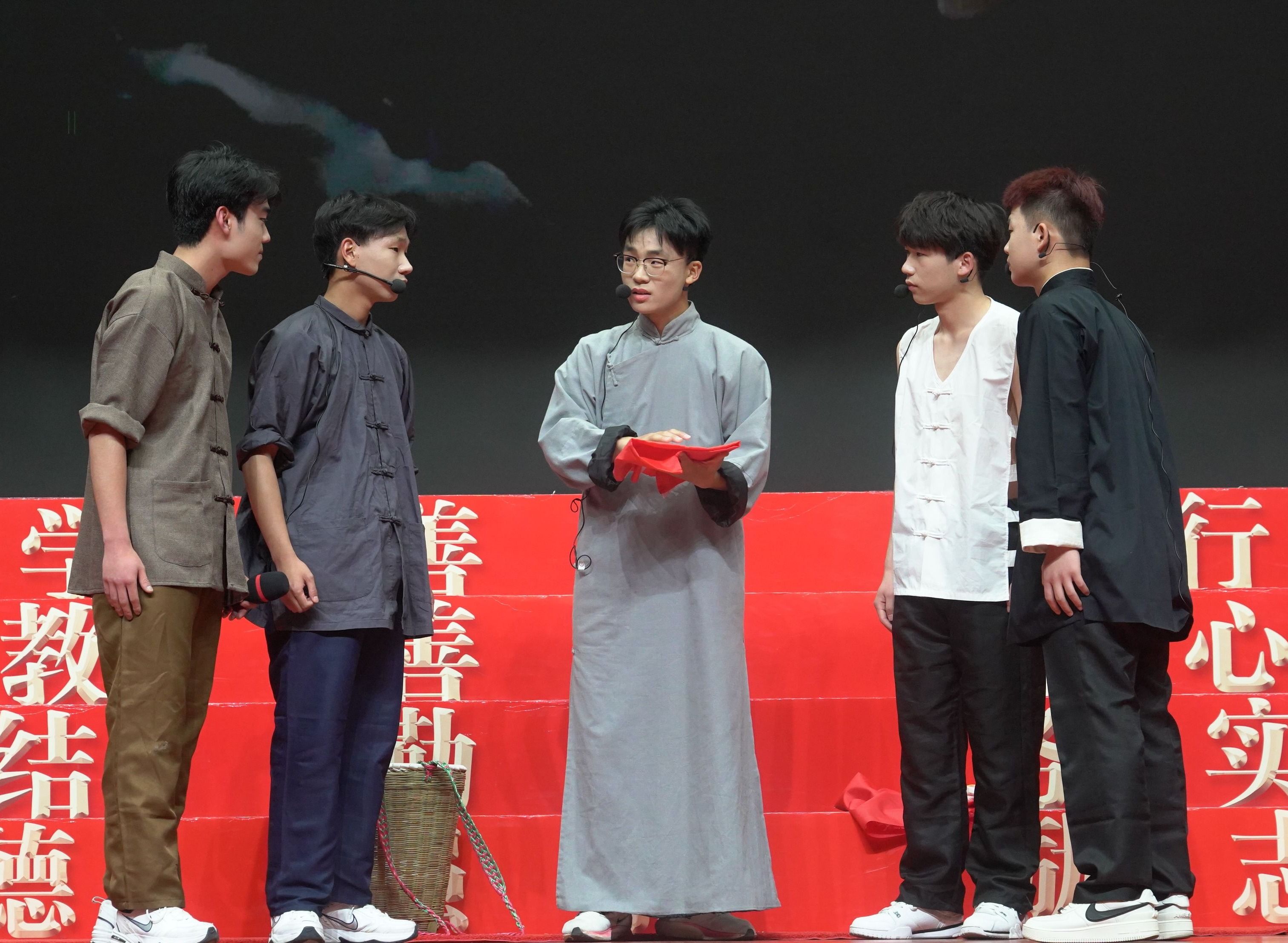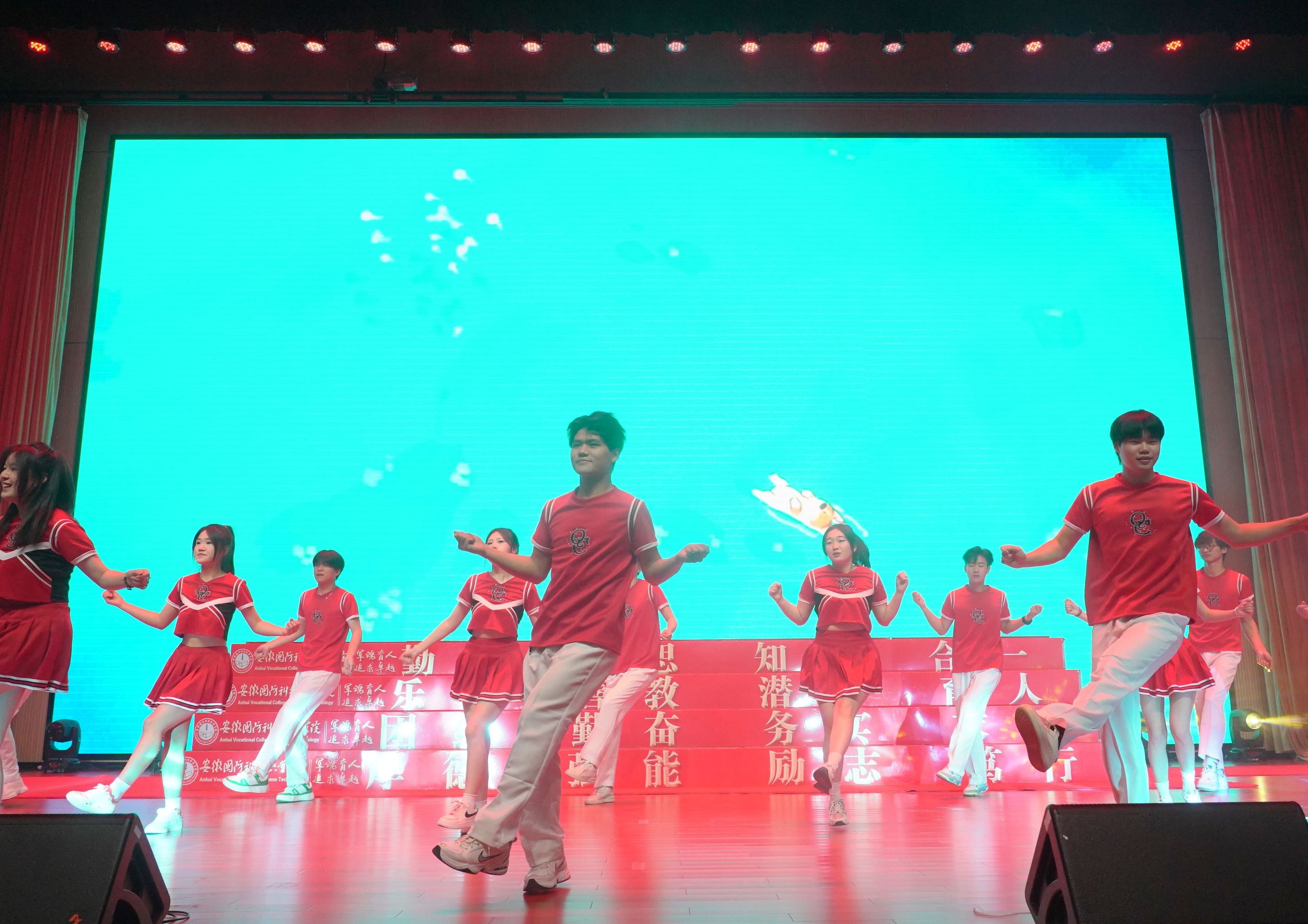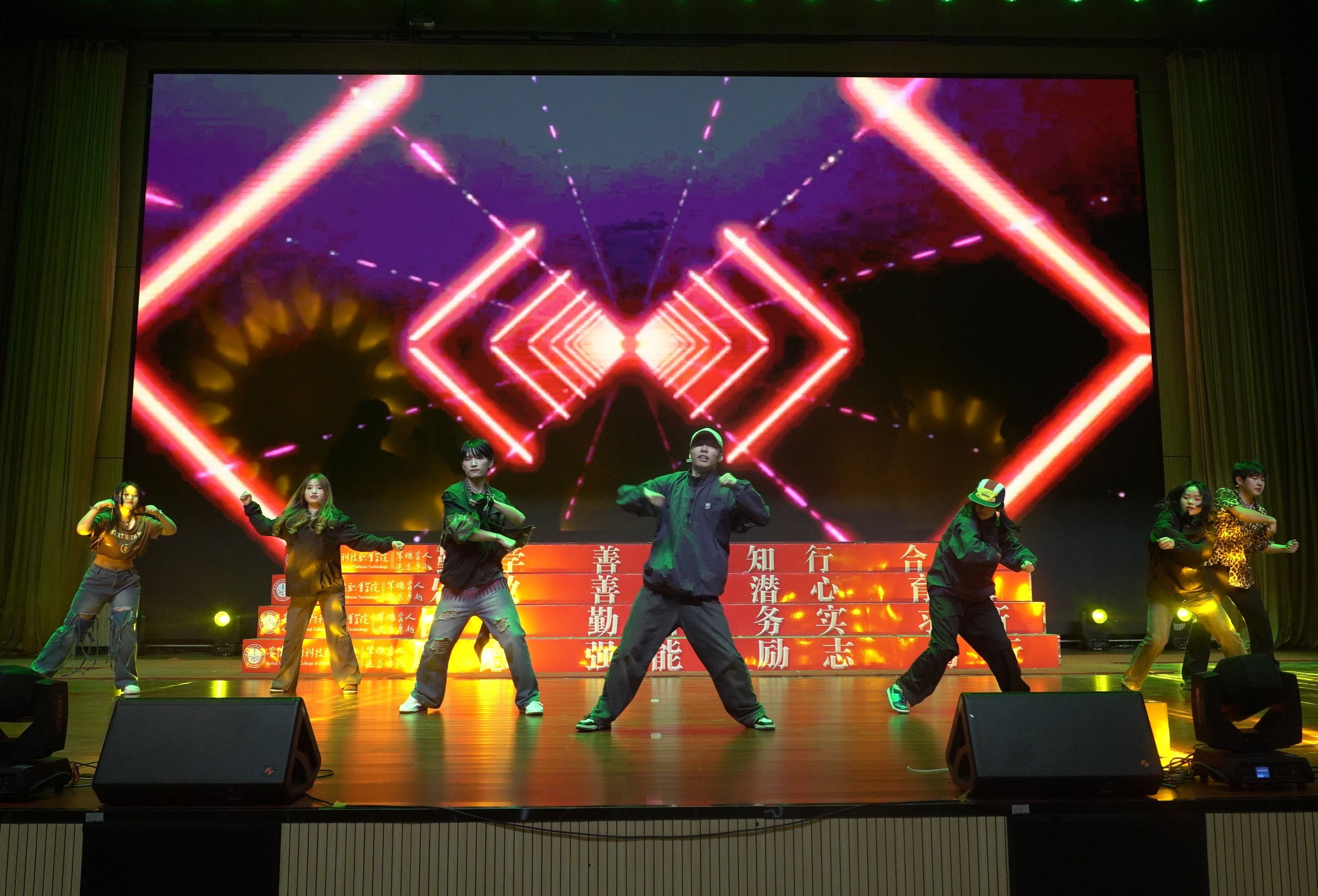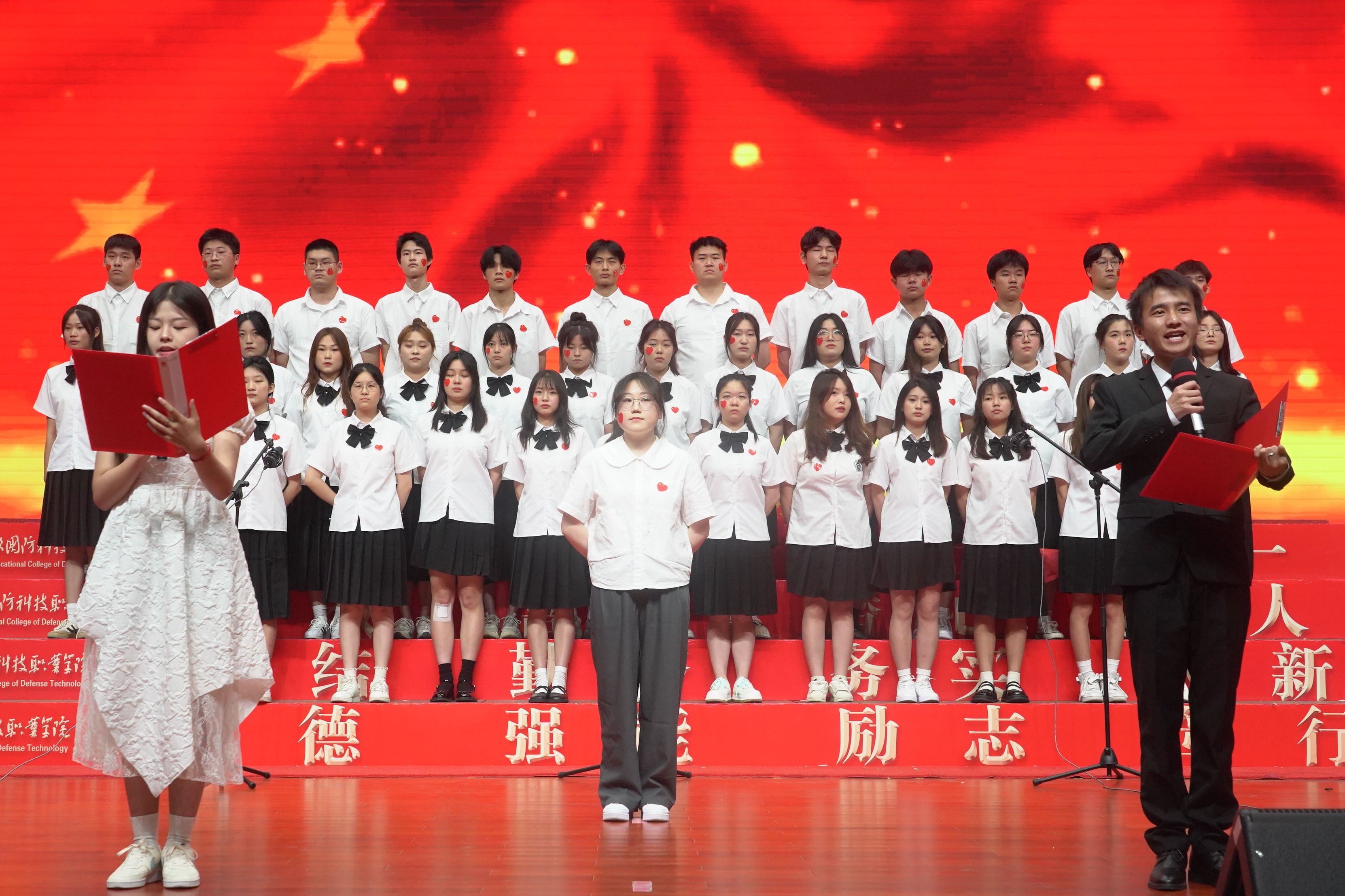 本次文艺展演共有来自二级学院、学生组织的十二支队伍参赛。节目共分为三个篇章,校大学生艺术团和广播站合跳开场舞《青春接力跑》,瞬间点燃了全场气氛,展现国防青年的激情与活力。社团管理部带来的舞台剧《党旗在我心中》拉开了本次大会的序幕,深刻学习体验到了中国共产党成立的艰难与不易,“身临其境”中更深入地了解红色文化的内涵和深度。