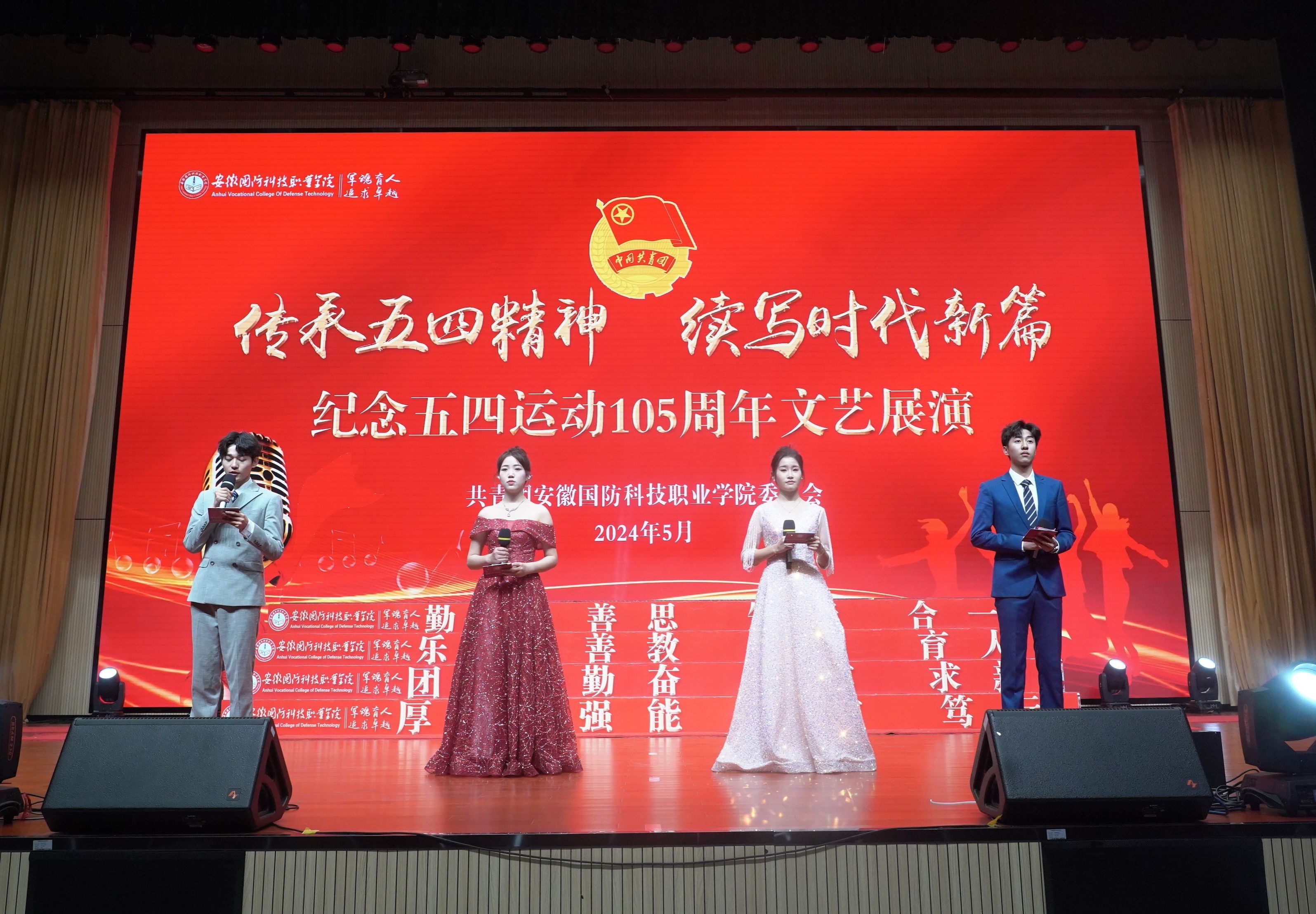 本网讯(团委 罗丞筠)为深入推进“时代新人铸魂工程”,大力弘扬“爱国、进步、民主、科学”的五四精神,激发青年爱国情怀,不断丰富师生的校园文化生活。5月15日,万象城官网“传承五四精神 续写时代新篇”——纪念五四运动105周年文艺展演顺利举办。校党委书记余嗣元,党委委员、宣传部部长、校团委书记陈思,党委学生工作部部长孙武,公共课教学部主任陈功立,各二级学院领导,六安职业技术学院、皖西卫生职业学院、六安技师学院学生会负责人应邀出席,2023年度荣获共青团工作各项荣誉的先进个人和集体代表以及500余名师生现场观看。