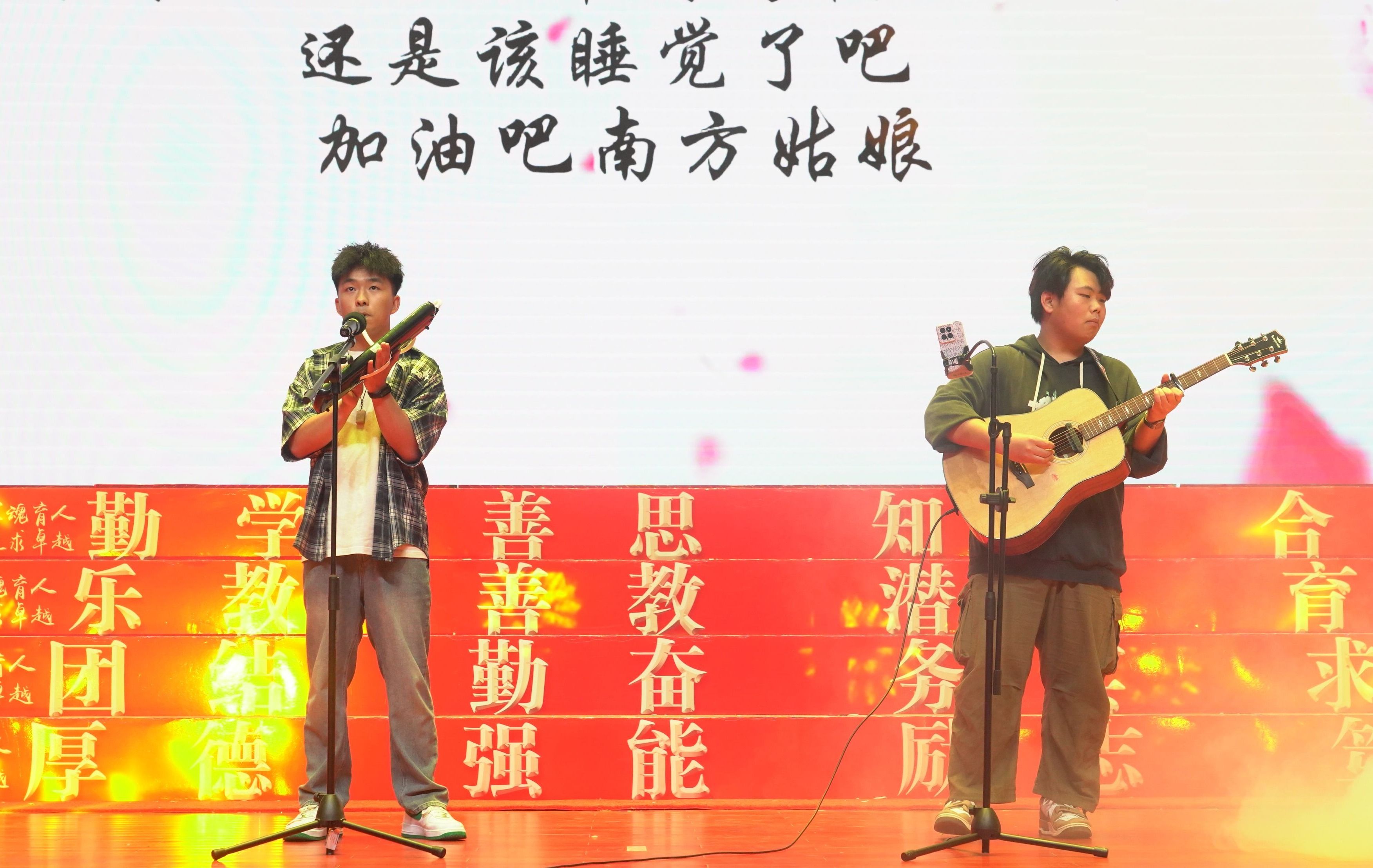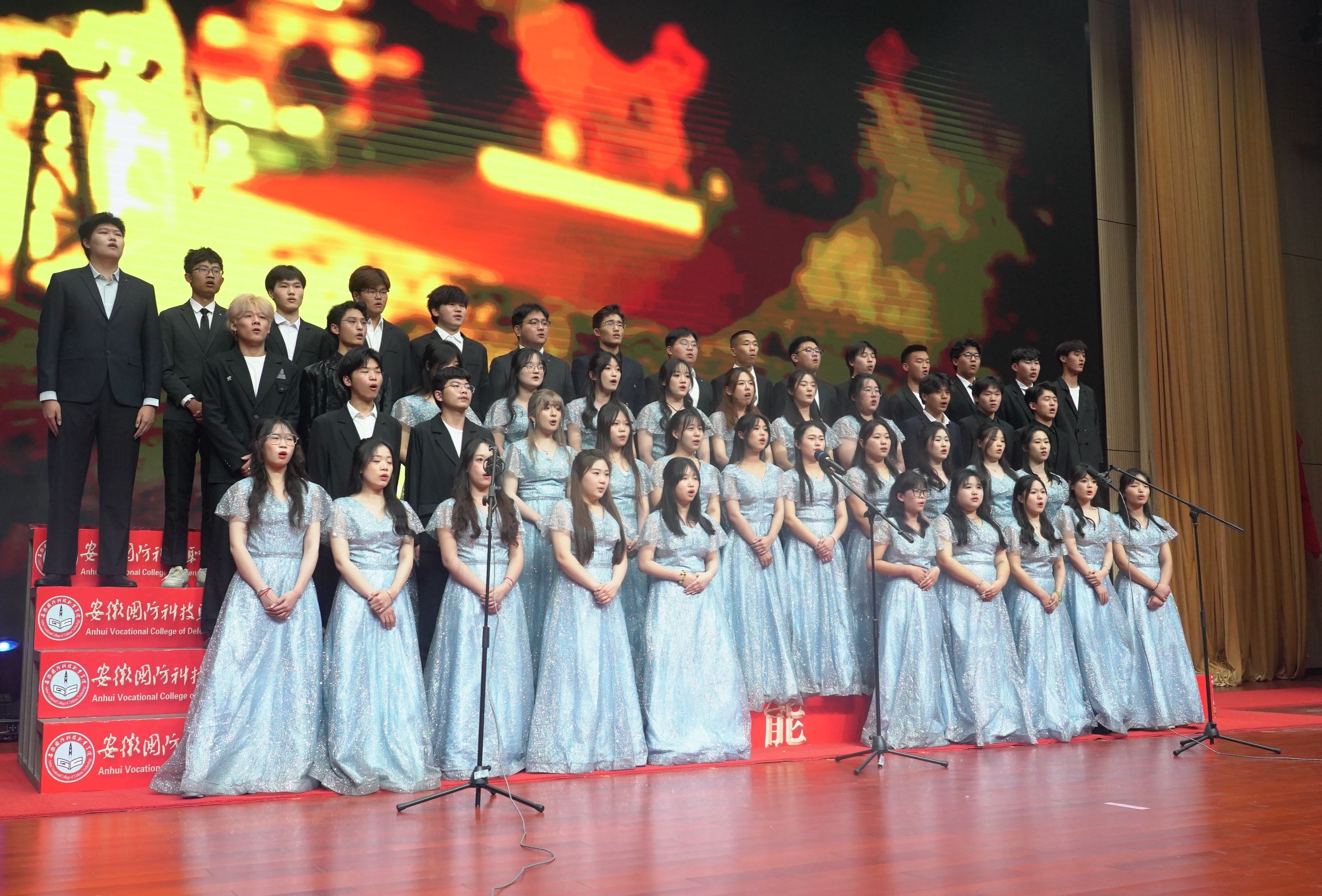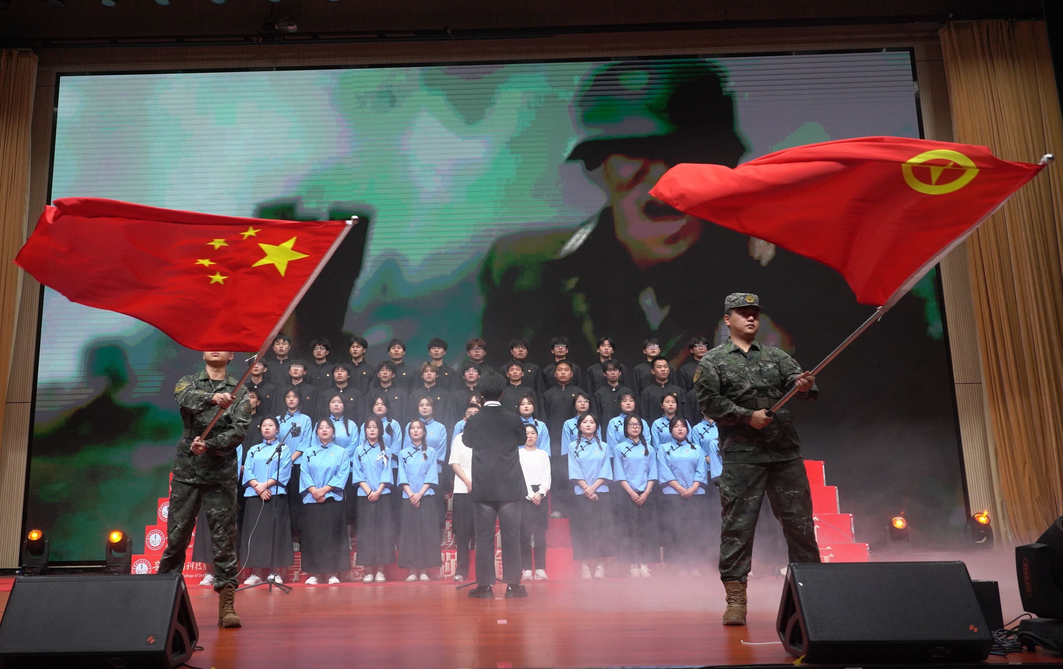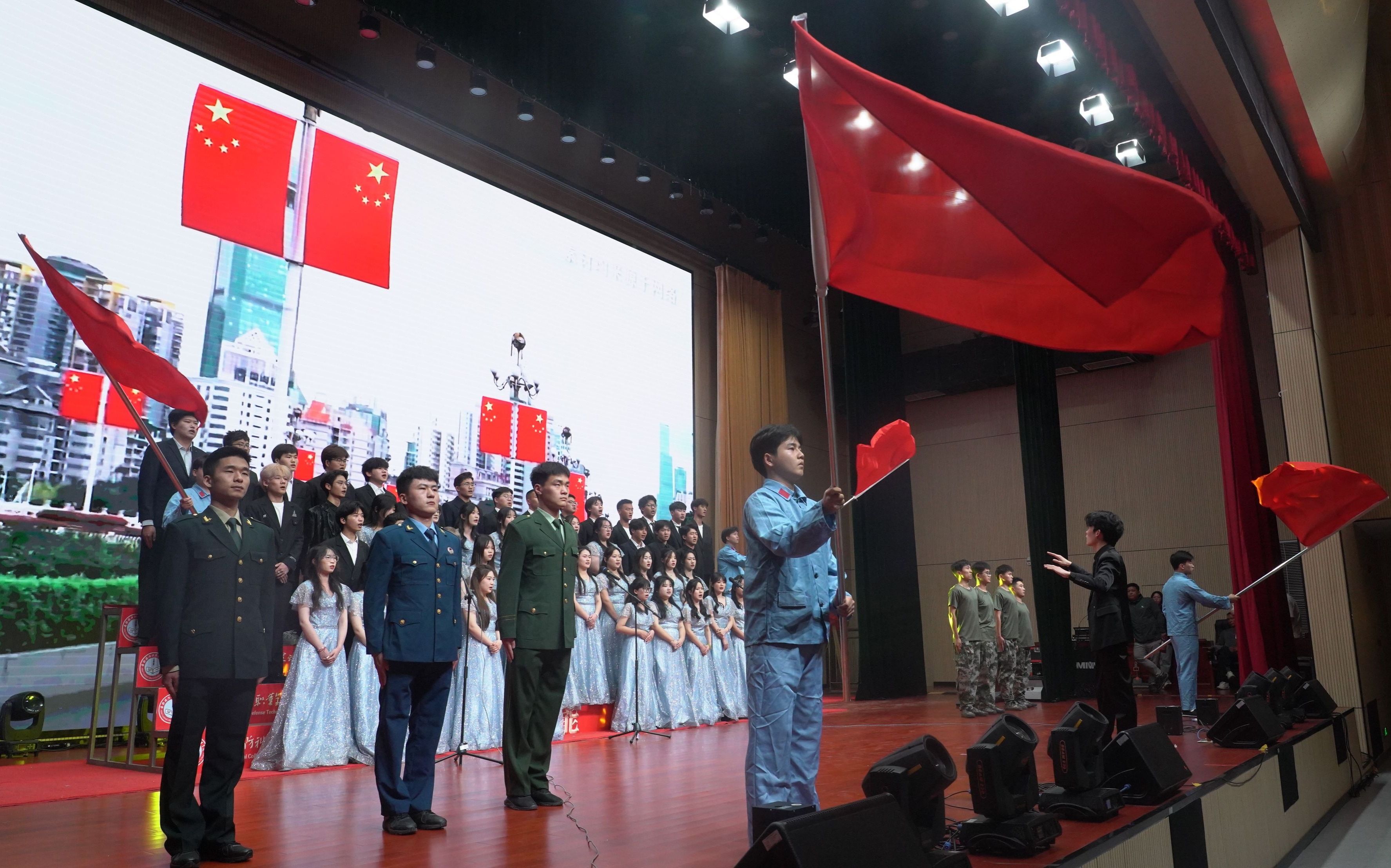 第二篇章以“奋勇争先育新人”为主题。国旗护卫队带来的合唱《祖国不会忘记》雄壮有力、刚健豪迈,带领现场师生回忆起辉煌事业背后的人物和故事;电气技术学院带来的《保卫黄河》,气势恢宏、铿锵有力,描绘了一幅壮阔的画面,展示出国防学子昂扬向上的姿态;遇见光,追逐光,成为光,奋斗是人生最美的姿态,青年站在时代的浪潮上,用奋斗激起万千波涛,用拼搏唱响青春之声,一首旋律悠扬的《逐光》由大学生合唱团精彩演唱;城市建设学院师生们合唱了一曲《祖国不会忘记》,歌声中饱含对祖国的拳拳赤子心,描摹了新时代青年坚定奋斗的模样,表达了万象城官网青年学子对美好明天的向往;悠悠乐声,尽显民族器乐之美,大学生艺术团带来的《南方姑娘》,同学们用手中的乐器演绎着美妙动听的乐曲,韵律和谐、曲调悠扬。