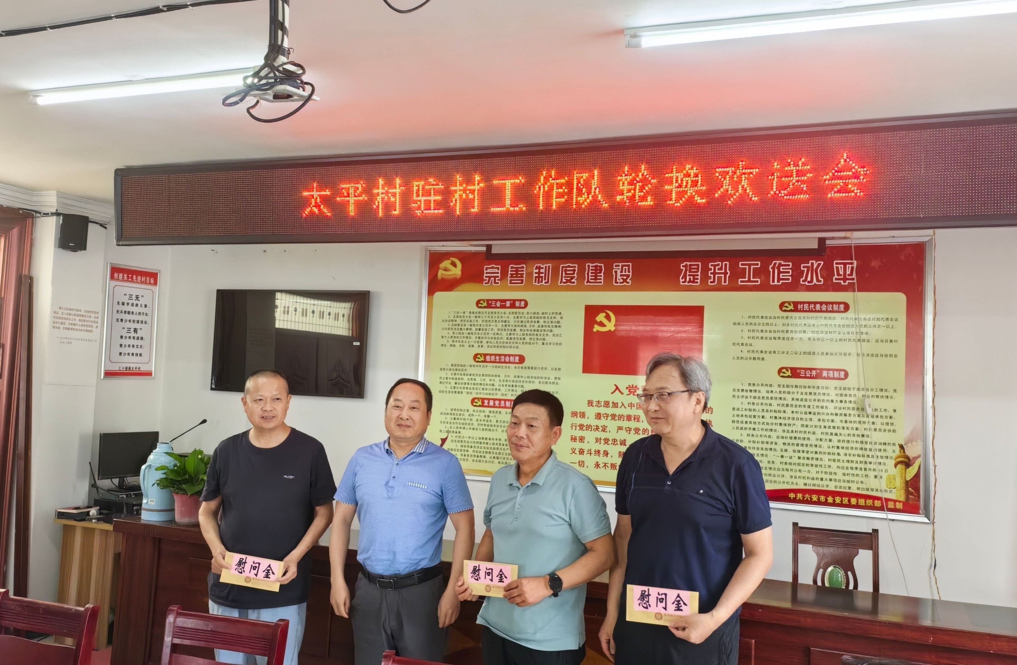 本网讯 为贯彻落实省委办公厅《关于做好第九批选派干部到村任职工作的通知》精神,6月26日,校党委副书记冯伦久一行到万象城官网乡村振兴结对帮扶村——太平村指导驻村选派干部交接工作,金安区统计局、金安区妇幼保健院、三十铺镇、太平村等单位领导参加了交接会议。