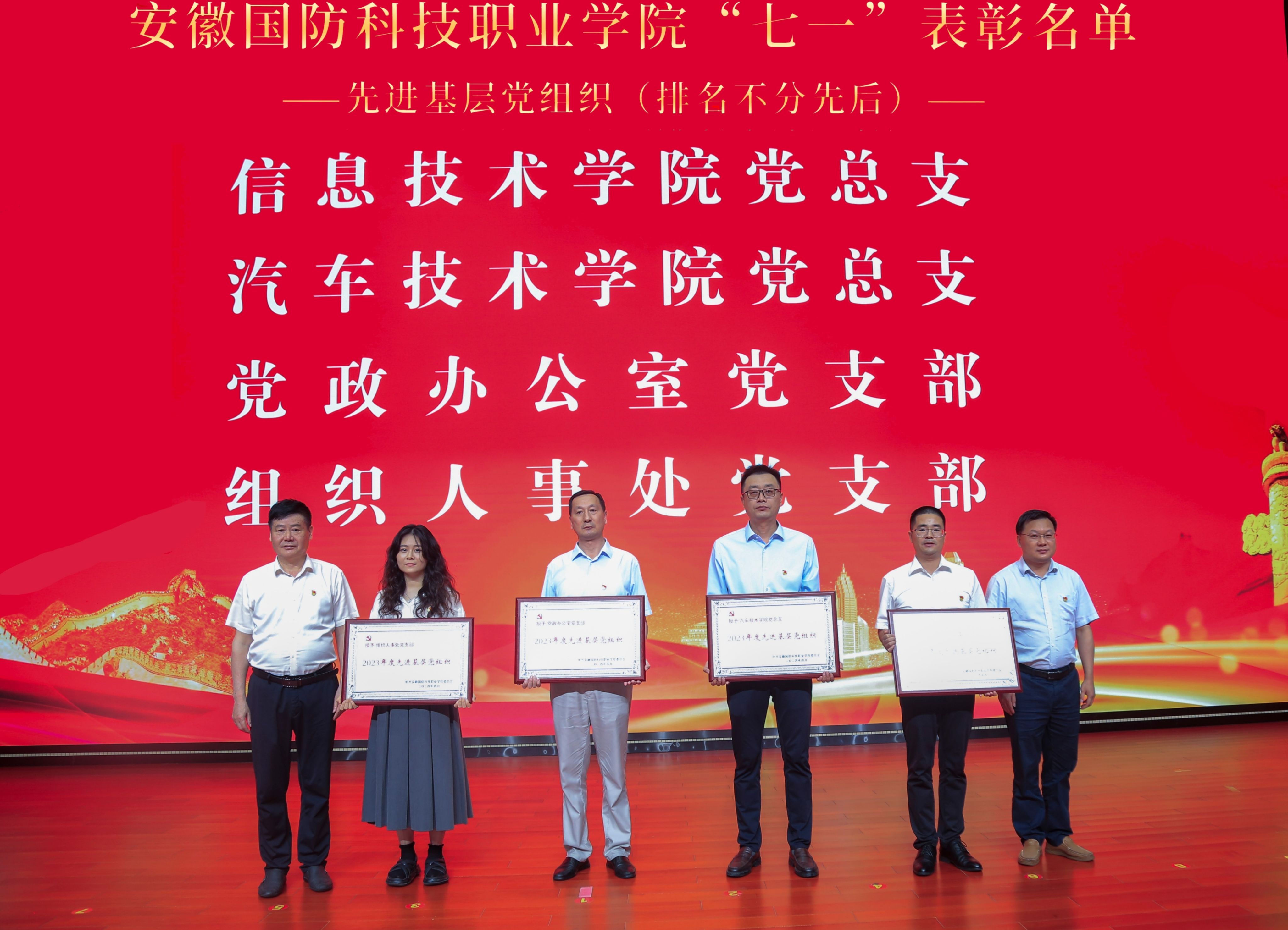 学校领导班子成员为先进基层党组织、优秀共产党员、优秀党务工作者颁奖,为学校“双带头人”教师党支部书记工作室授牌