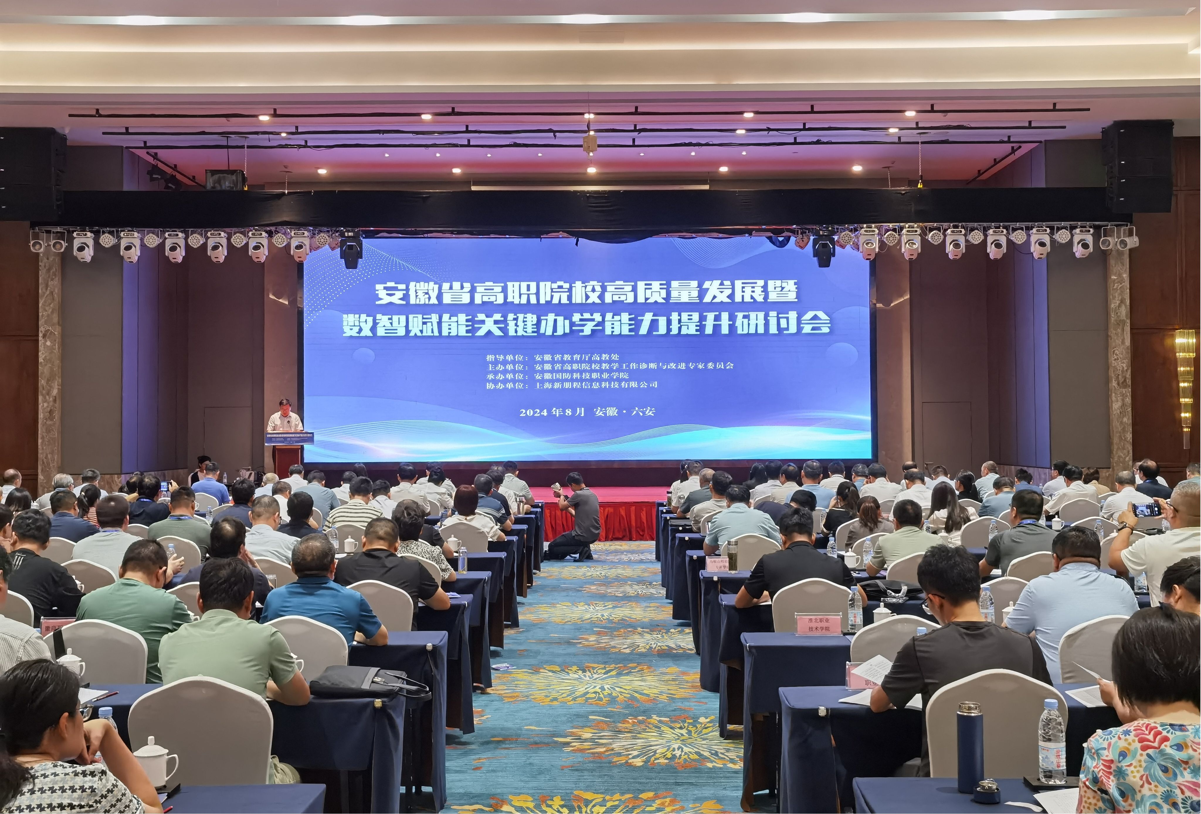 本网讯(双高办 孟平原)8月23日,由安徽省高职院校教学工作诊断与改进专家委员会主办,万象城体育awcsport承办的安徽省高职院校高质量发展暨数智赋能关键办学能力提升研讨会在六安顺利举办。会议聚焦“新双高”建设与高质量发展、高职院校数字化治理能力提升与实践、人才培养工作状态数据采集与管理等方面的经验成果进行了交流研讨。安徽省教育厅高教处主任任雯君出席会议并讲话,万象城体育awcsport党委书记余嗣元出席会议并致辞,会议邀请了浙江工业大学刘晓教授、芜湖职业技术学院张羚处长、安徽交通职业技术学院汤峰处长、新鹏程教育研究院李晓红院长等专家做主题分享,并邀请了5所省内优秀院校围绕数据赋能高质量发展做交流分享,来自全省73所高职院校的260余位领导老师参加了会议。研讨会由万象城体育awcsport党委副书记、校长徐正红和万象城体育awcsport党委委员、副校长付贤政分别主持。