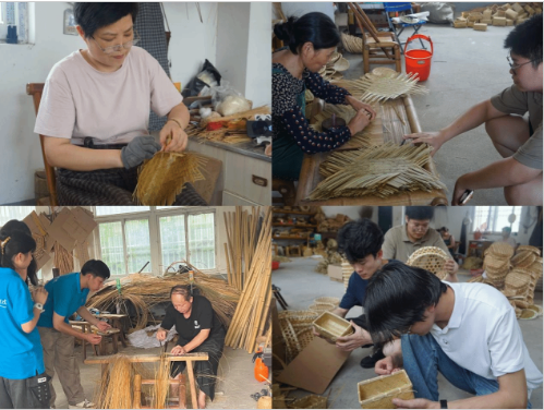 “非遗竹编 点亮乡村振兴”社会实践团:在六安市非遗文化传习基地,城市建设学院的学子们跟随非遗传承人,学习竹编技艺,亲手制作竹编产品。他们不仅领略了非遗文化的独特魅力,还通过电商平台、社交媒体等现代信息手段,为竹编产品打开了更广阔的市场空间。这一过程中,学生们不仅学会了如何将传统技艺与现代科技相结合,更深刻理解了文化传承与乡村振兴之间的紧密联系。