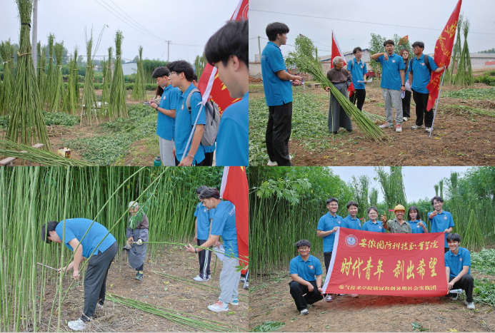 “时代青年 剥出希望”社会实践团:在六安市裕安区石板冲乡前厂村旱麻种植基地,电气技术学院的学子们与村民并肩劳作亲身体验剥麻的艰辛与乐趣。通过实地调研与交流互动使他们对“三农”问题有了更深刻的理解也更加坚定了为乡村振兴贡献力量的决心。