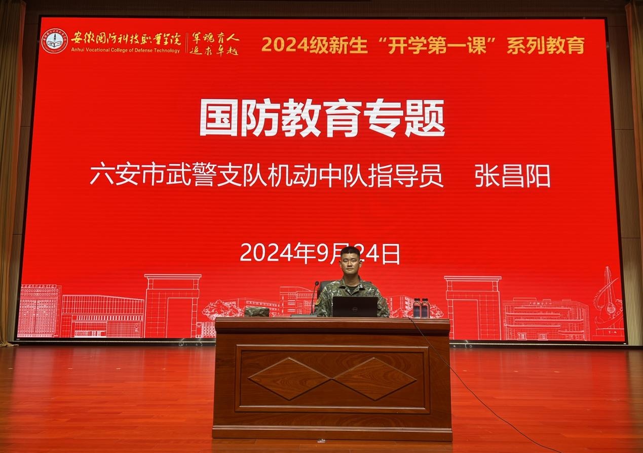 9月24日晚,六安市武警支队机动中队指导员张昌阳为新生作了题为“认清安全形势,强化国防观念,争做一名不负韶华的新时代有志青年”的国防教育专题讲座。张昌阳指出,历史是最好的教科书,也是最好的清醒剂。他详细阐述了我国各个时期的国防建设以及我国当前的安全形势,深刻揭示了国防的重要性和国防教育的重大意义,勉励同学们要时刻保持家国情怀、树立投身国防的信念,对党和人民军队充满信心,努力学习为国家建设作出贡献。