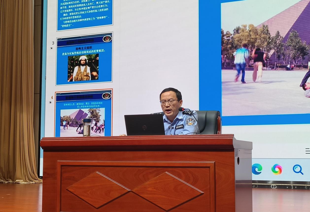 陈宗权为新生讲授在校学生安全教育及校园反恐教育课