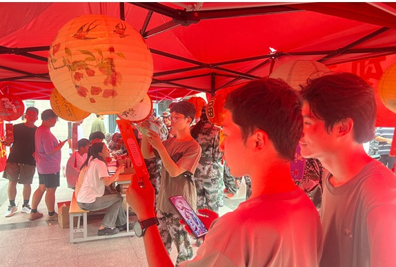 乐猜灯谜玩中秋。9月16日下午,经贸管理学院团总支在校图书馆门口广场搭设帐篷,悬挂五彩花灯谜面,邀请全校学生参与猜灯谜活动,让参与者在活动中体会中华优秀传统文化的独特魅力,增强了学生的文化自信和对传统文化的了解认同,激发他们的爱国热情。此次活动各学院学生积极响应参与,学生或独自驻足仰面思考,或三三两两结伴探讨,或场外求助网络搜索,一条条谜底被纷纷解开,大家兴奋地摘下谜面,在兑奖台兑换月饼。