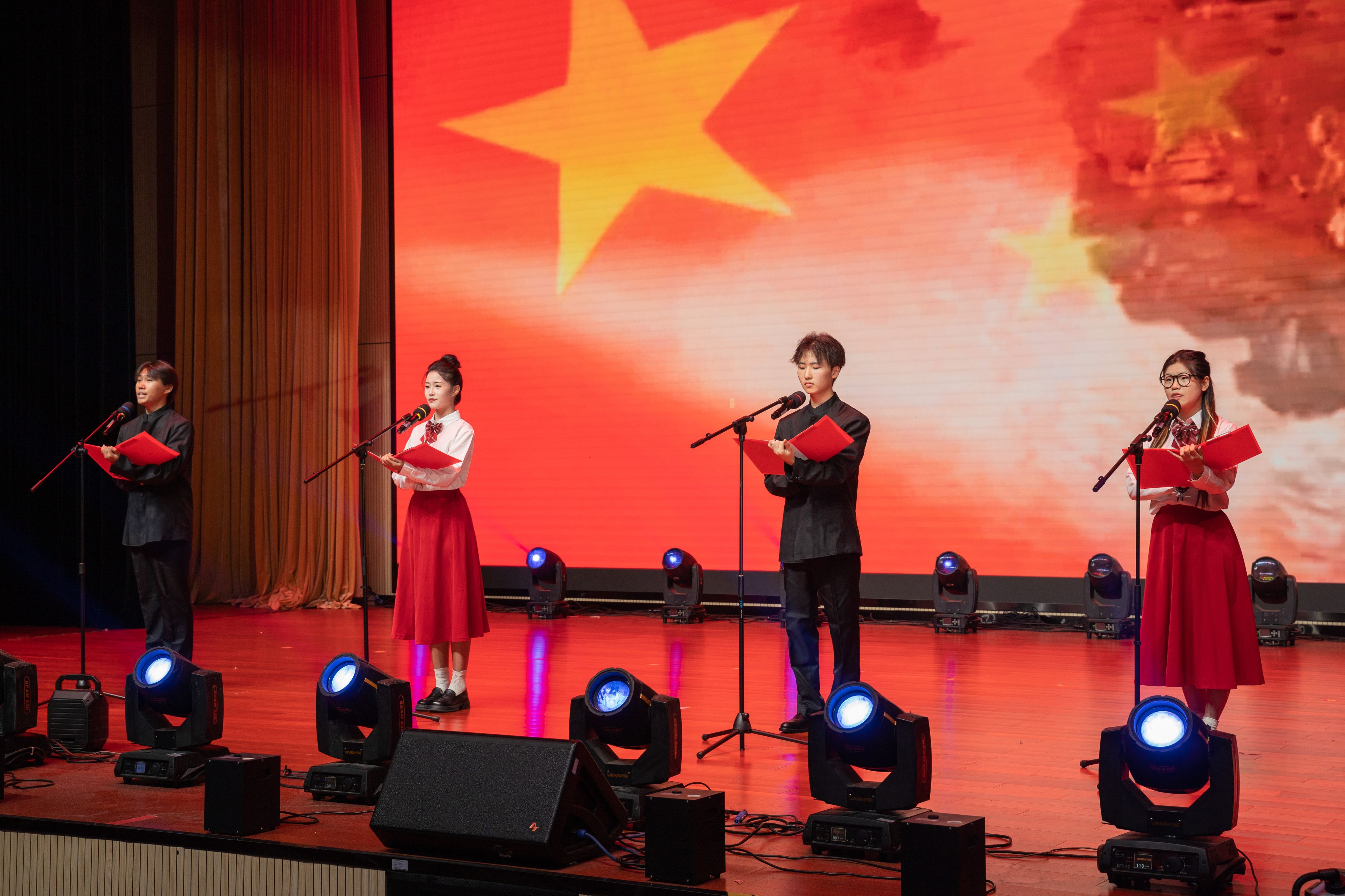 第三篇章“携手共进”。朗诵《国歌响起》字字铿锵有力,句句饱含深情,展现了强烈的爱国情怀与民族自豪感。匕首操《军武》国旗护卫队的队员们身着统一制服,动作整齐划一,表演匕首操,展现力量与技巧,气势恢宏,场面震撼。舞台剧《真的!就是真的!》剧情扣人心弦,表演生动传神,赢得观众阵阵掌声。歌伴舞《万疆》演员们身着华服,随着悠扬的旋律起舞,深情而壮美,展现了万象城官网学子的青春风采与爱国情怀。