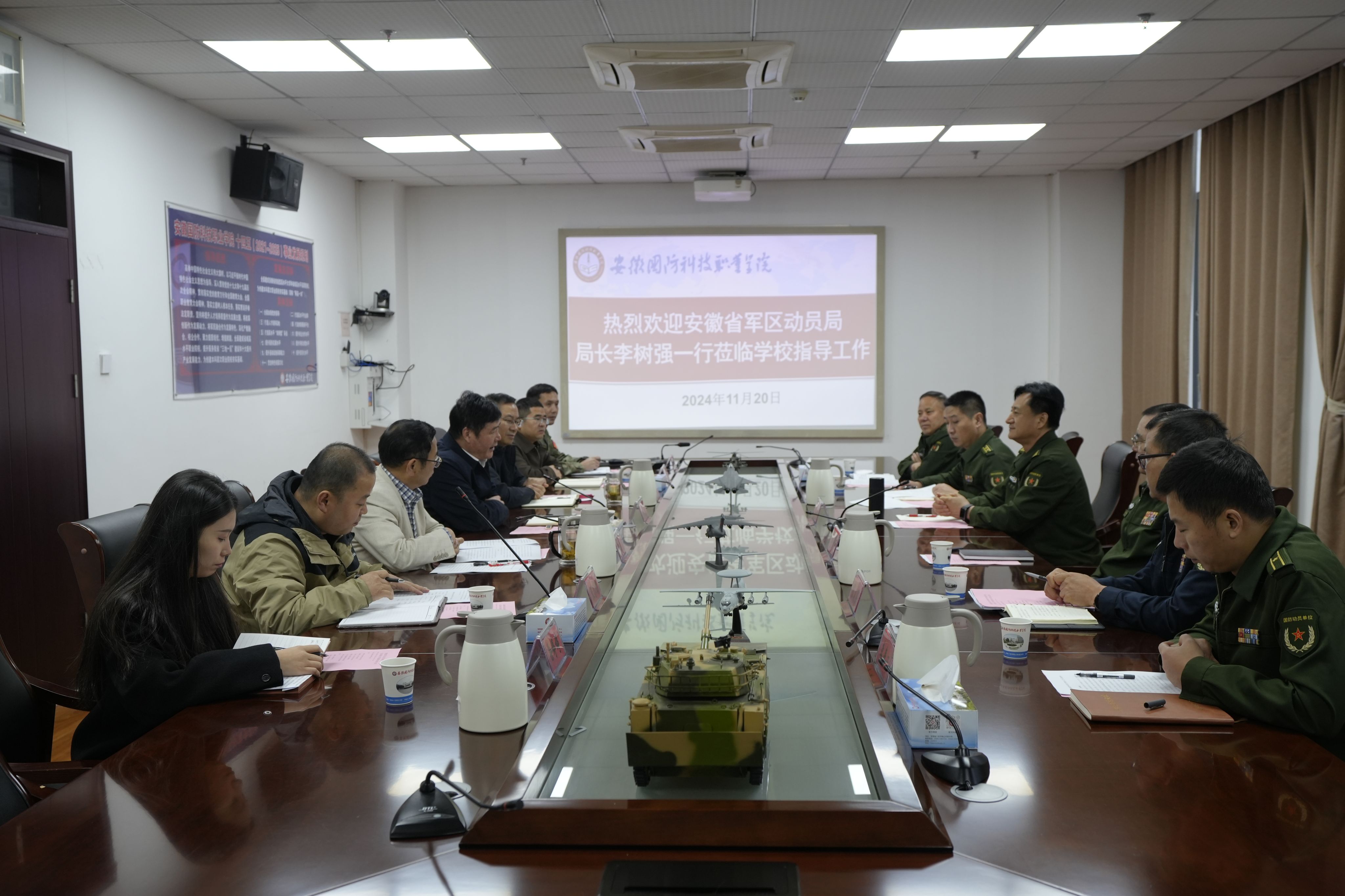 本网讯 11月20日上午,安徽省军区动员局局长李树强,六安市委常委、军分区政委项修阳来校调研指导大学生征兵工作,省军区动员局参谋辛雷、李春雨,六安军分区动员处处长王培喜,金安区人武部部长张家强等陪同调研。校党委书记余嗣元,校党委委员、副校长付贤政,校学工部、人武部负责人以及辅导员代表等参加座谈会。
