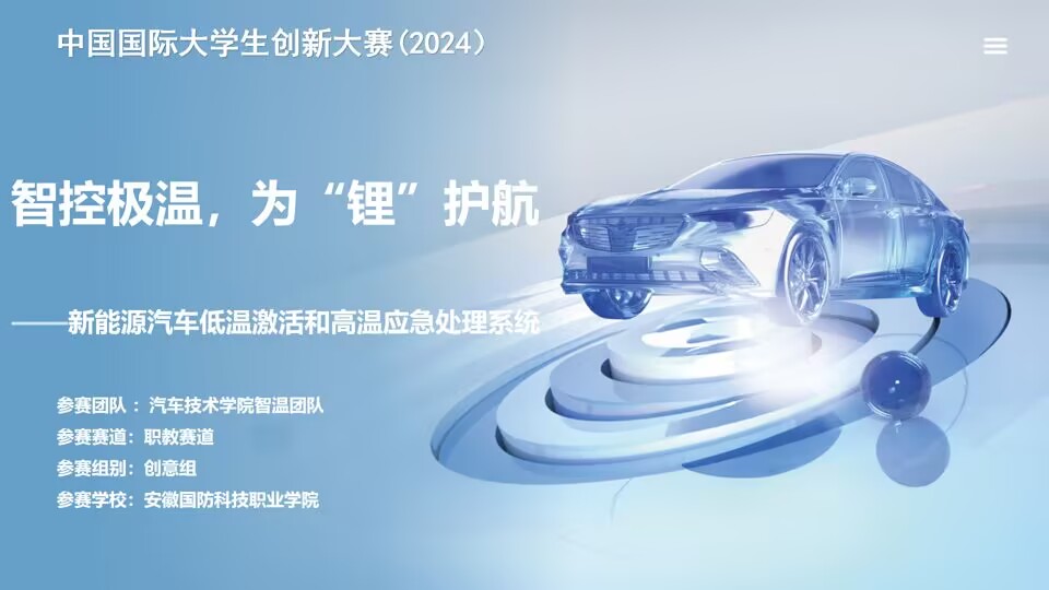 《智控极温,为“锂”护航——新能源汽车低温激活和高温应急处理系统》团队旨在解决新能源汽车车载电池在极端温度下适应能力不强的热点问题,设计了一款适用于市面上新能源汽车车载电池低温激活和高温应急处理系统。该系统经过1000余次测试实验,低温激活效果良好,高温判断迅速精准,实车测试效果良好。